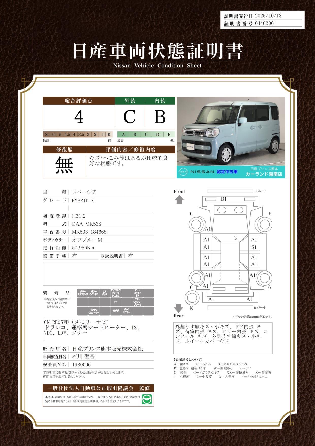 車両状態評価書 | ※クリックすると開きます![]() |