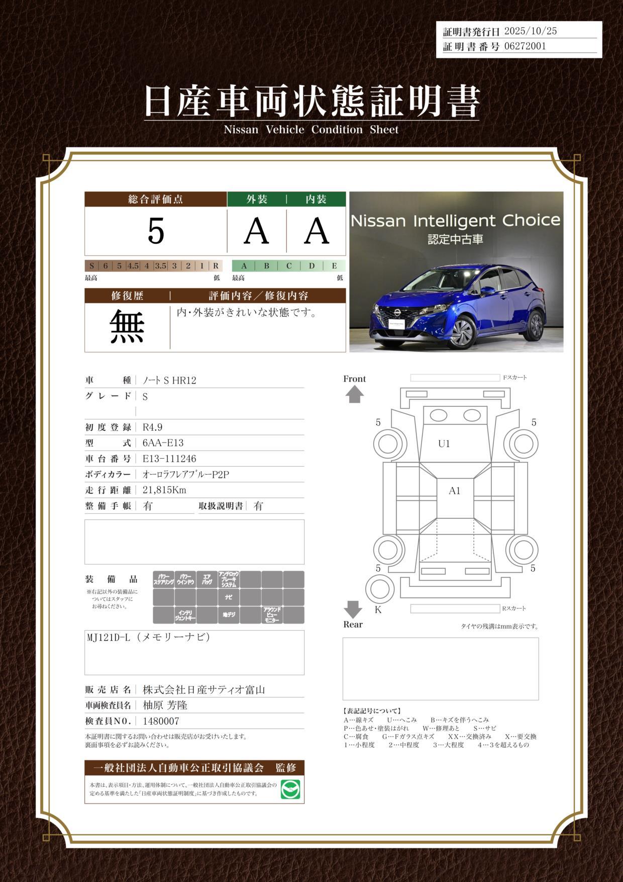 車両保証(ノート S:(株)日産サティオ富山 U-carsとなみ)