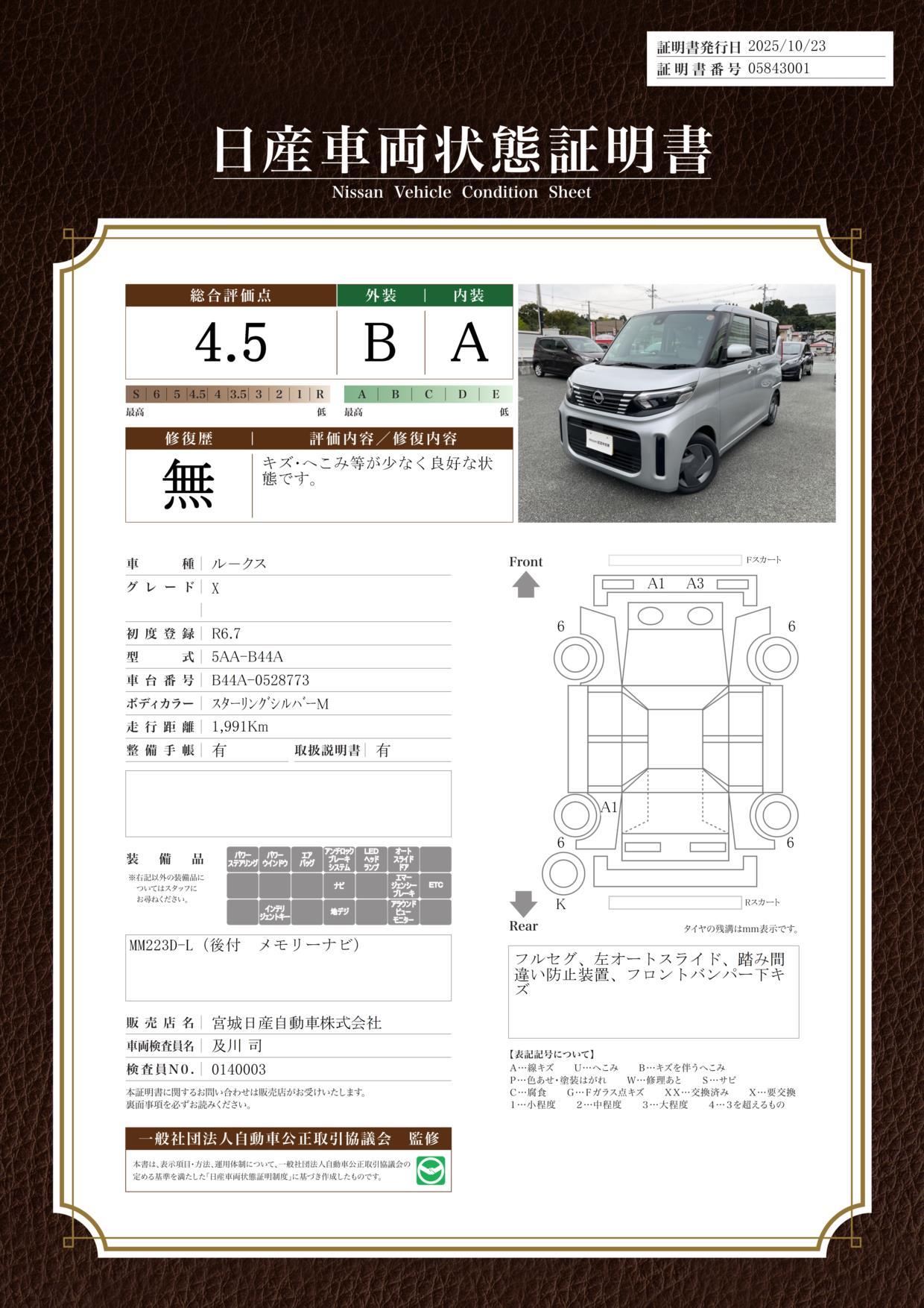 車両保証(ルークス X:宮城日産自動車(株) カートピア気仙沼)