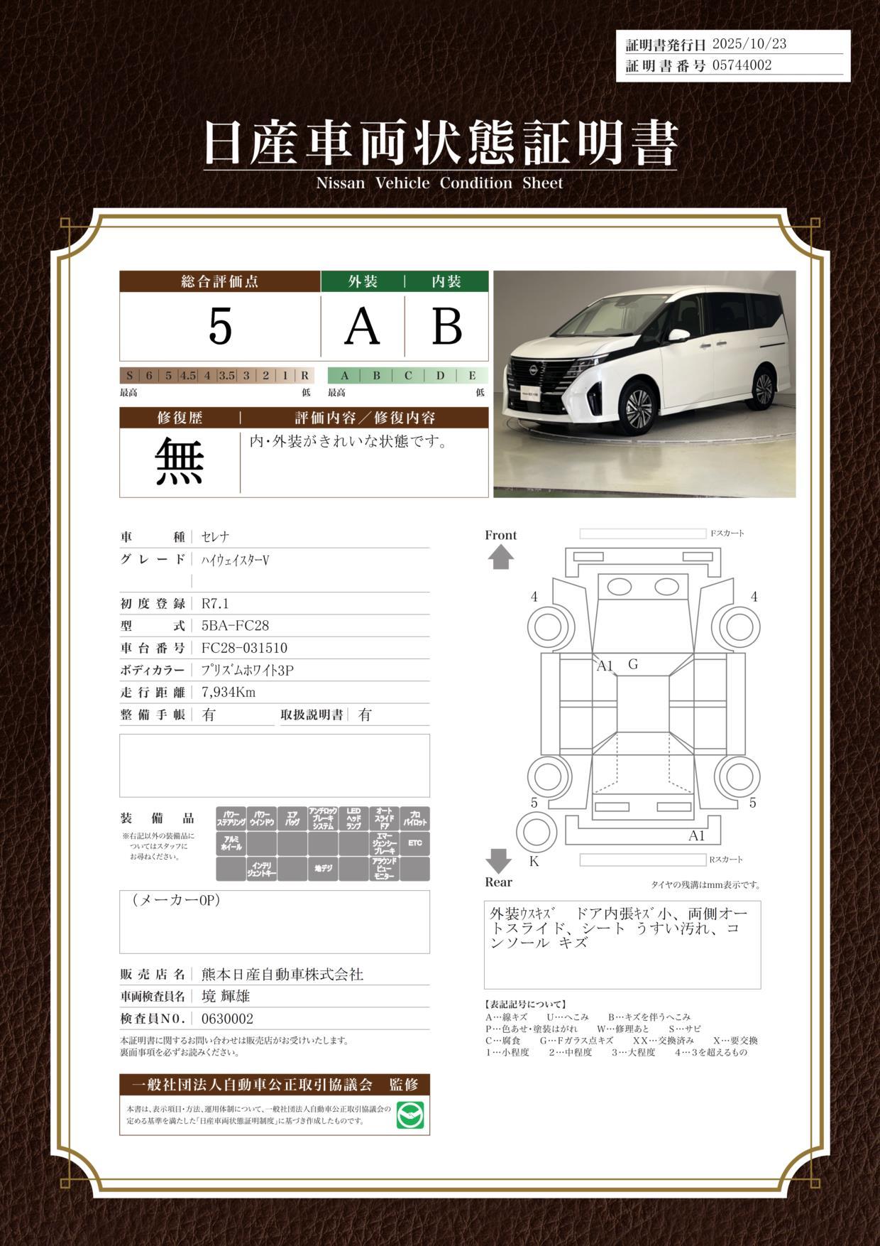 車両保証(セレナ ハイウェイスターV:熊本日産自動車(株)ユーカーズ熊本)