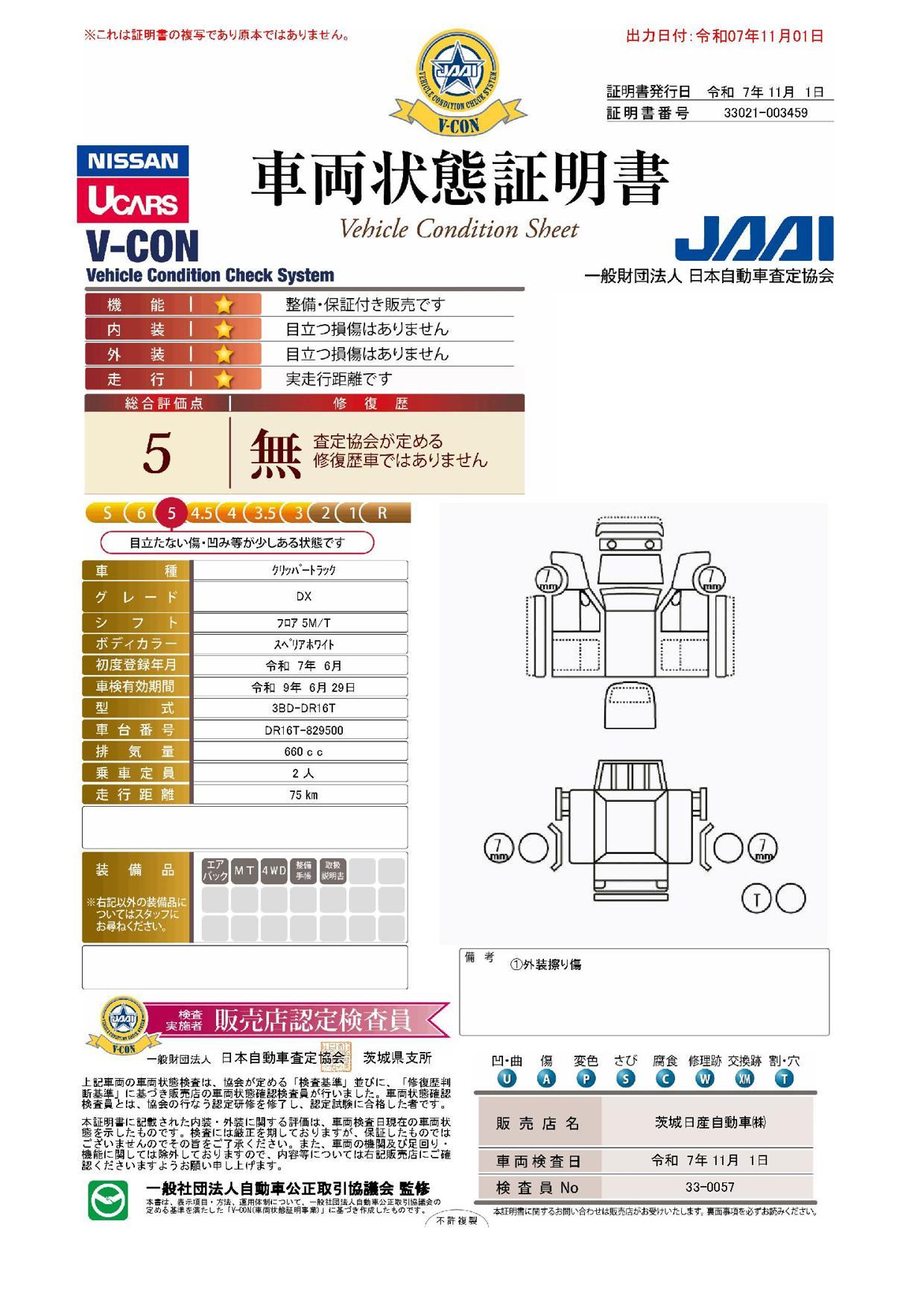車両保証(クリッパートラック DX:茨城日産自動車(株)カーミナルひたち野うしく)