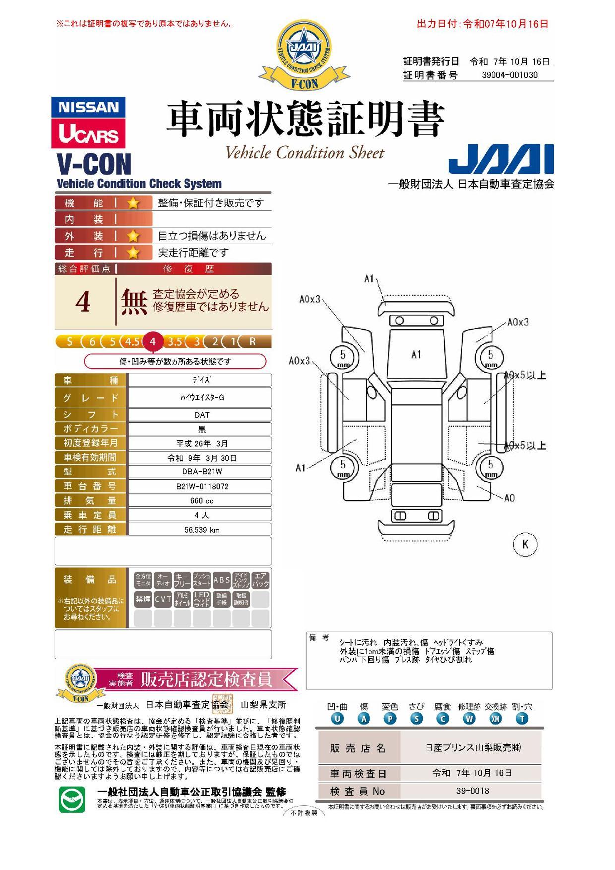 | 車両状態評価書 | ※クリックすると開きます![]() |