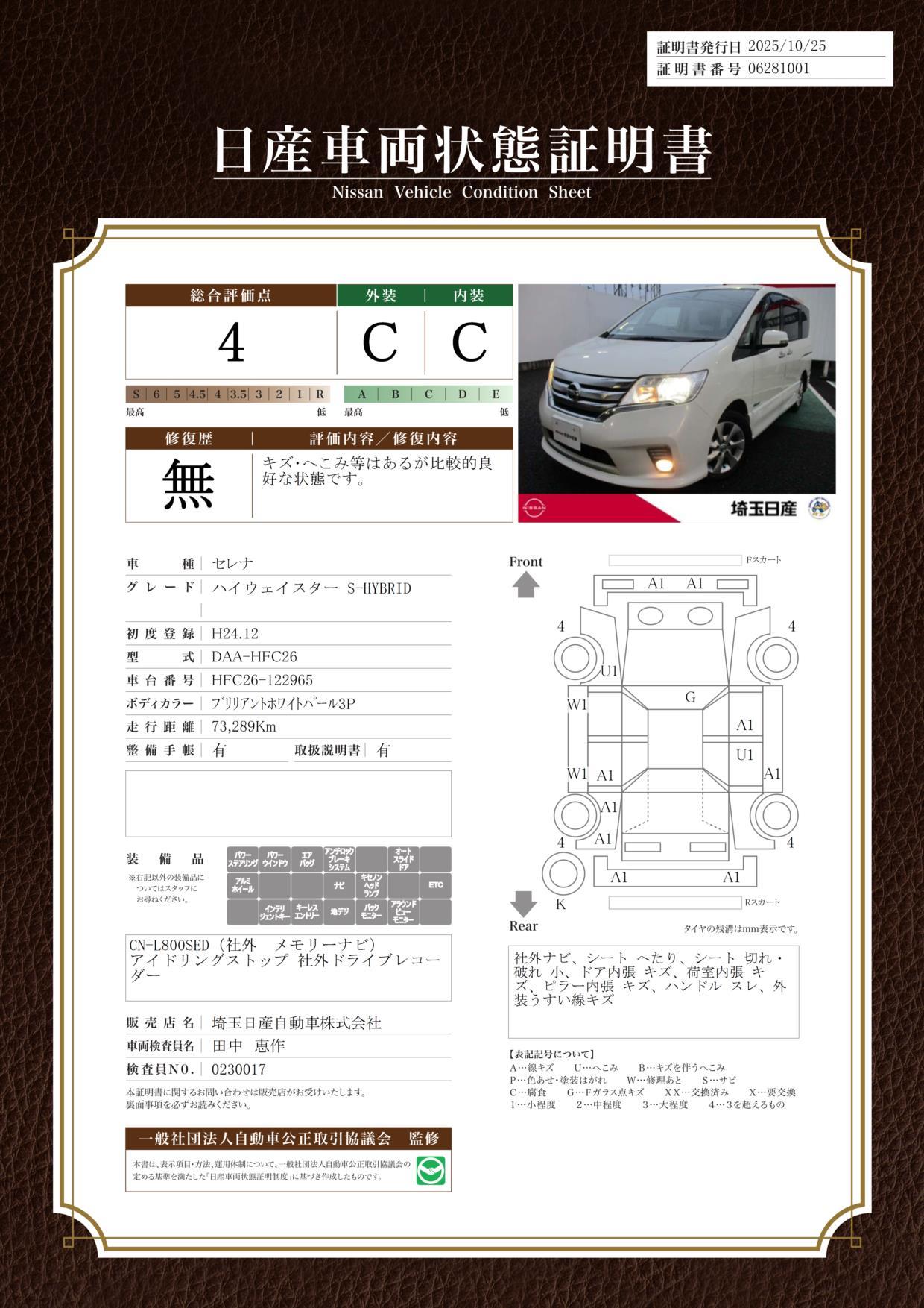 車両保証(セレナ ハイウェイスター S-ハイブリッド:埼玉日産自動車(株) U-cars春日部)