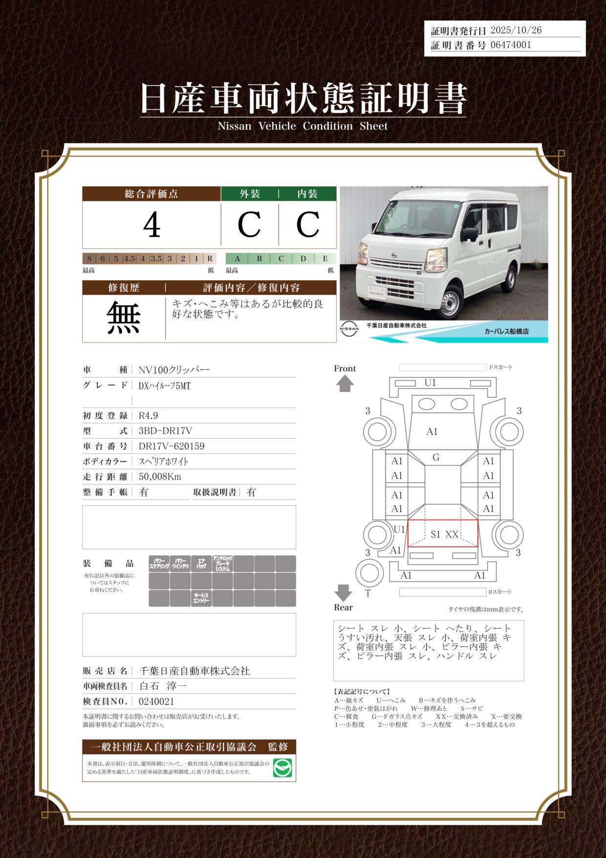 車両保証(NV100クリッパーバン DX:千葉日産自動車株式会社 日産カーパレス船橋店)