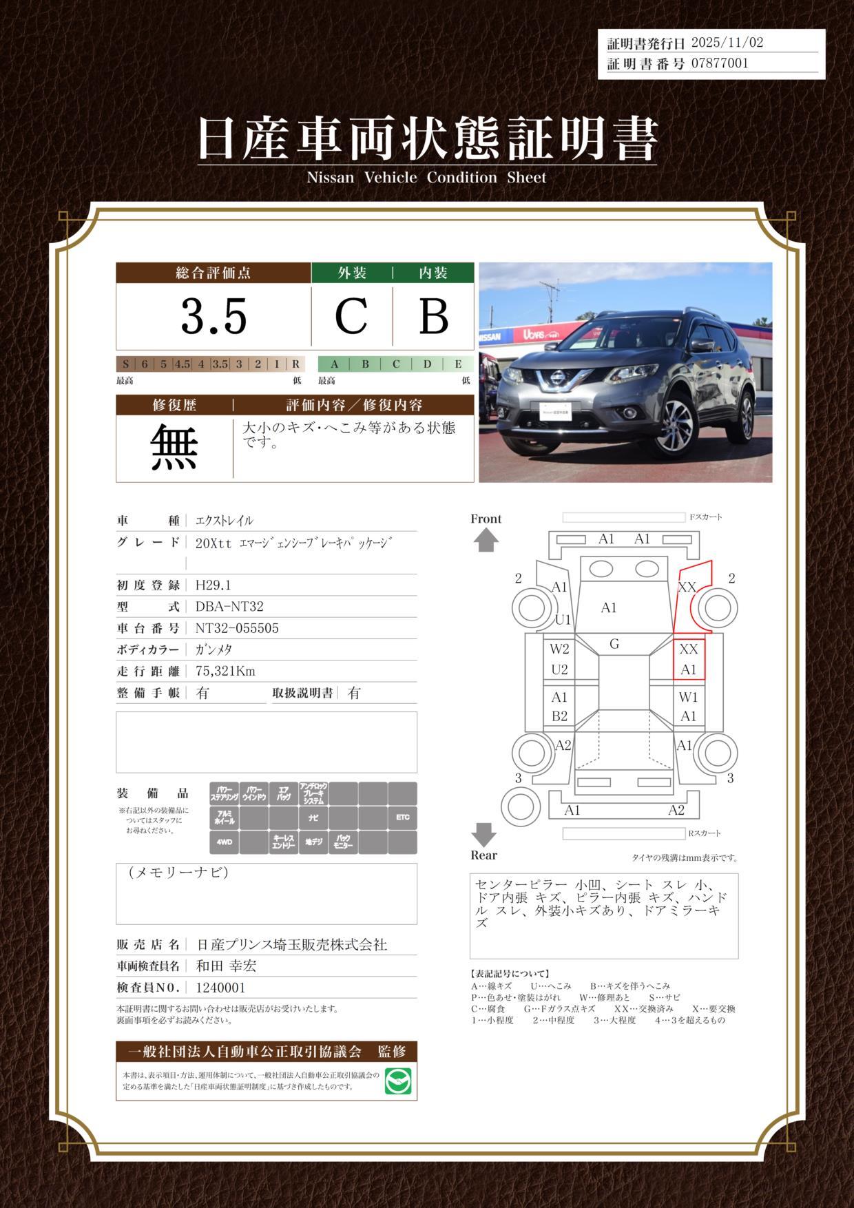 車両保証(エクストレイル 20Xtt エマージェンシーブレーキパッケージ:日産プリンス埼玉販売(株) ユーカーズ東松山)