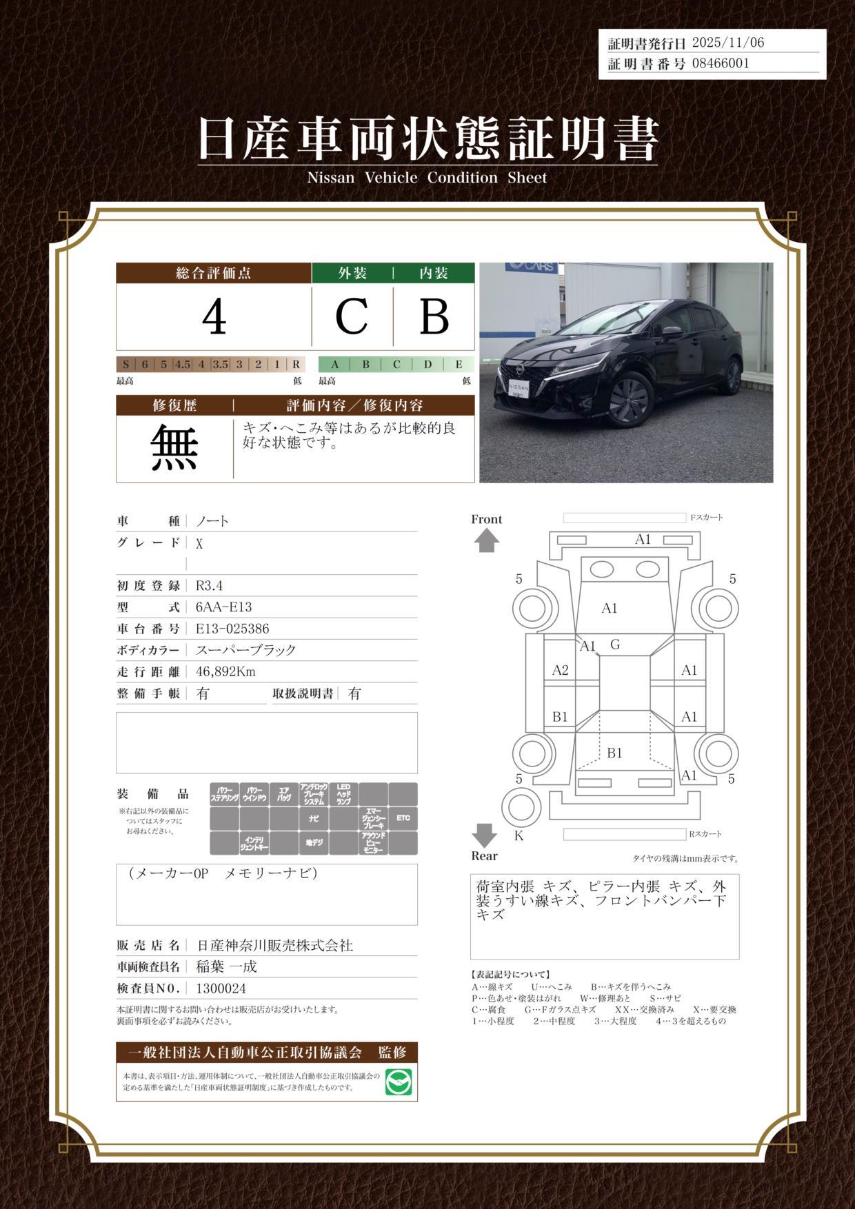 車両保証(ノート X:日産神奈川販売株式会社 Carスクエア茅ヶ崎)