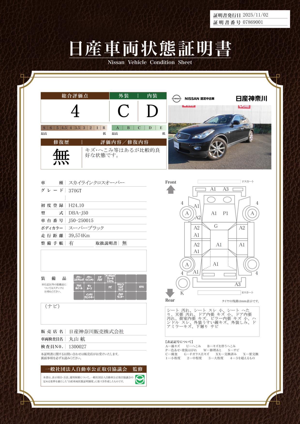 車両保証(スカイラインクロスオーバー 370GT:日産神奈川販売株式会社Carスクエア横須賀佐原)