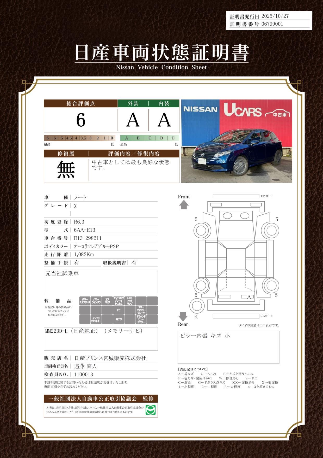 車両保証(ノート X:日産プリンス宮城販売(株) 多賀城中古車センター)
