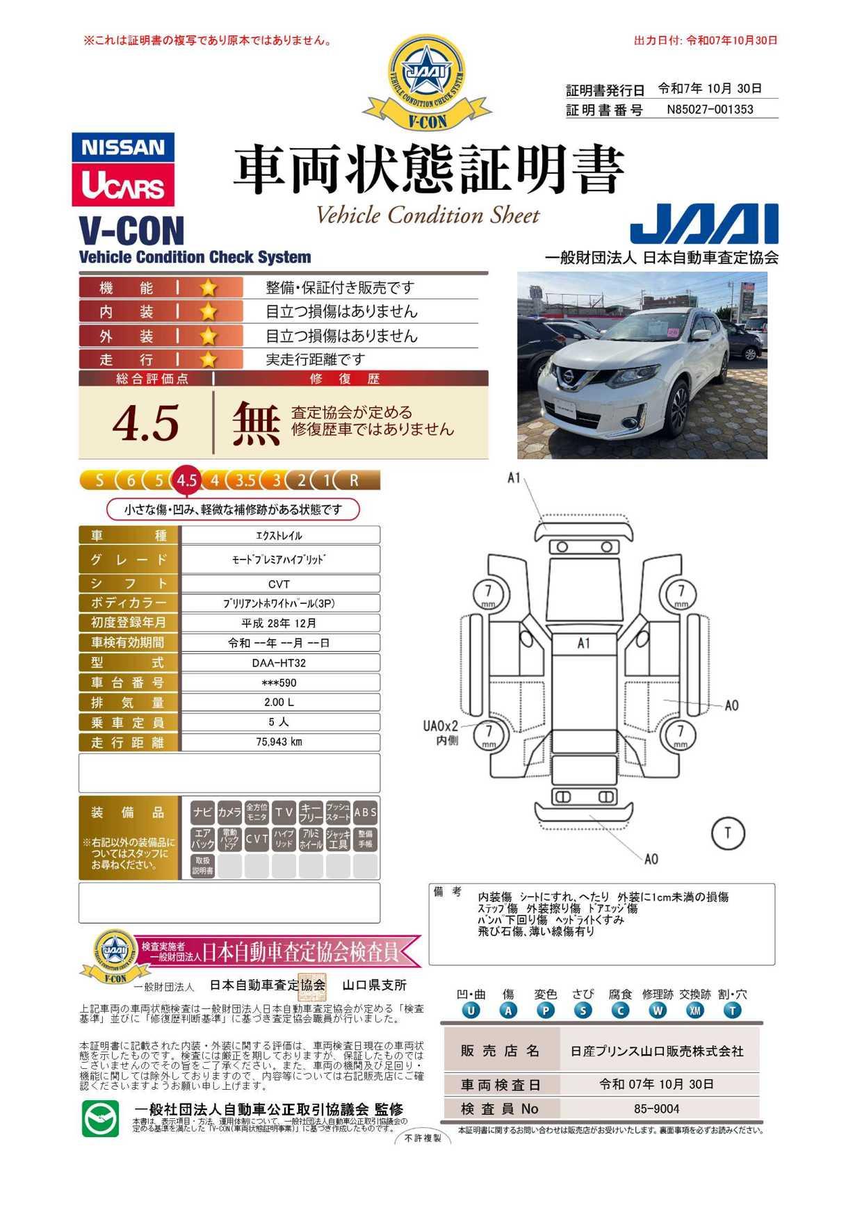 車両保証(エクストレイル モード・プレミアハイブリッドエマージェンシブレーキP:日産プリンス山口販売(株) 下関中古車センター)