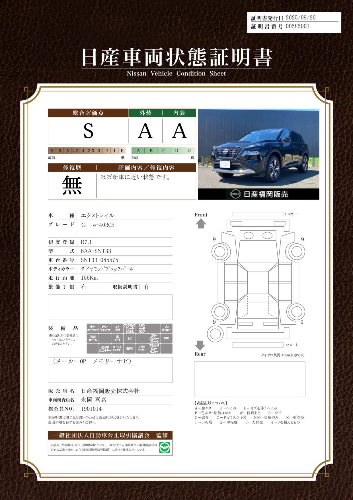 | 車両状態評価書 | ※クリックすると開きます![]() |