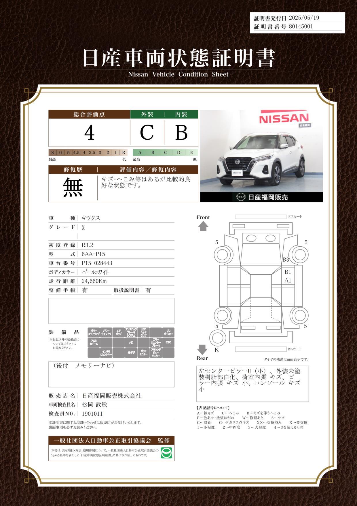 車両保証(キックス X:日産福岡販売(株)カーパレス曽根)