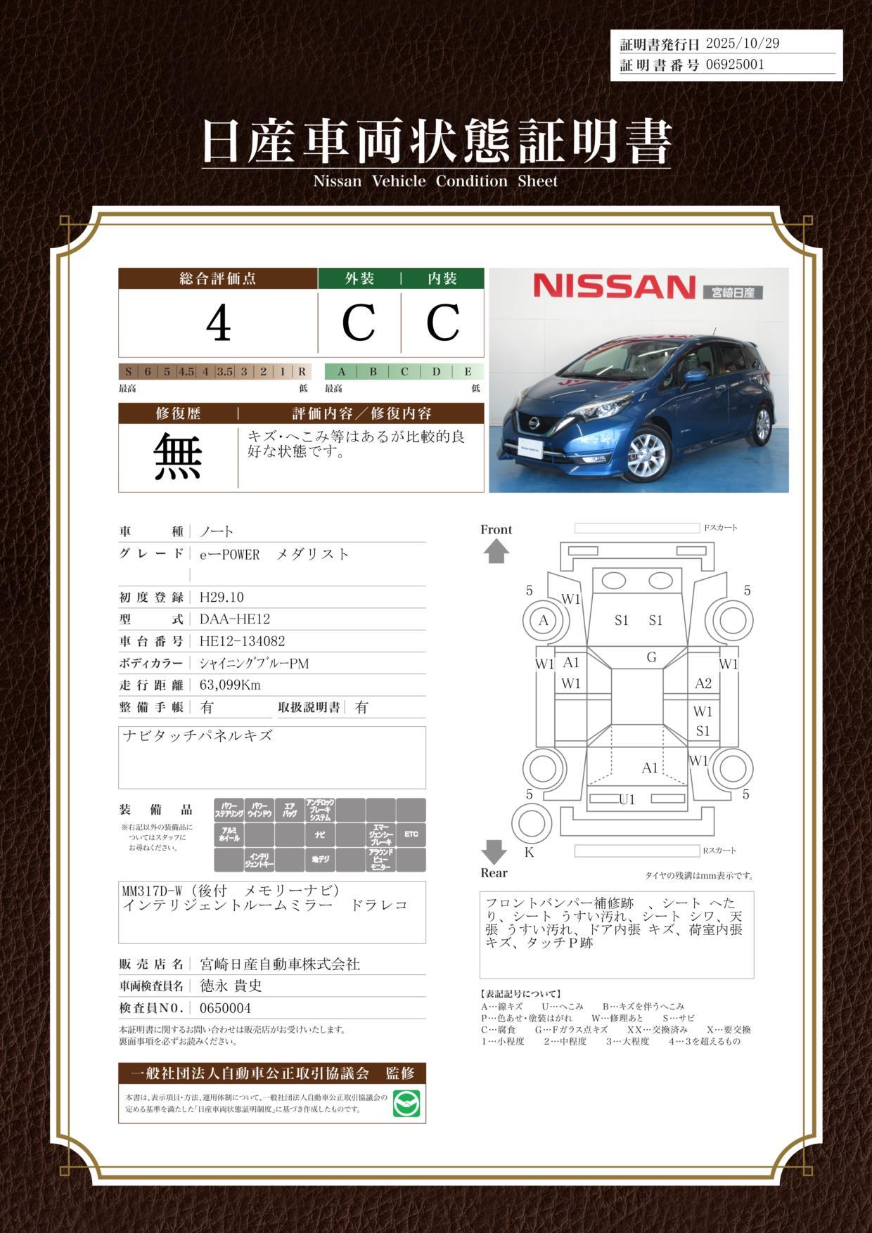 車両保証(ノート e-パワー メダリスト:宮崎日産自動車 都城カーセンター)