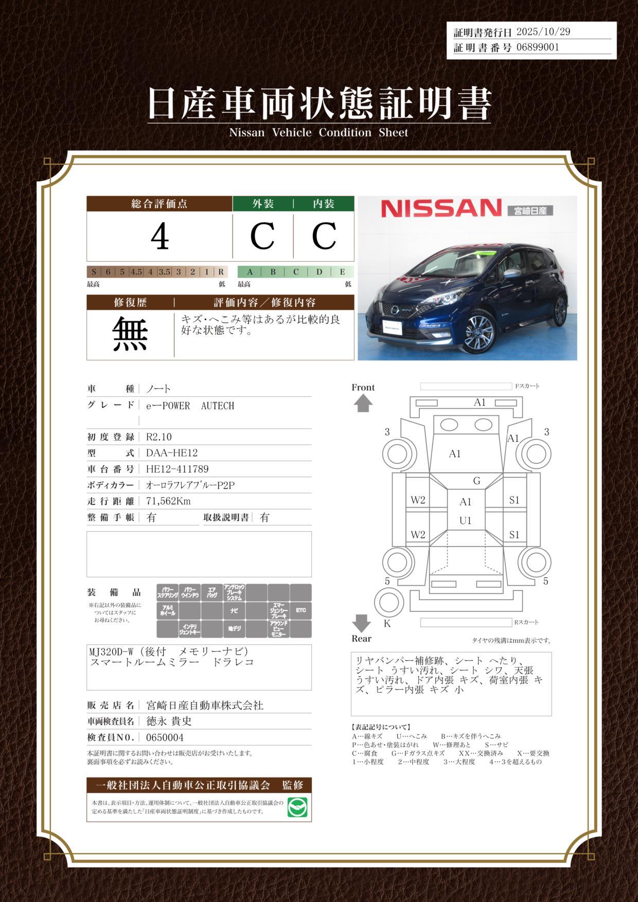 車両保証(ノート e-パワーオーテック:宮崎日産自動車 都城カーセンター)