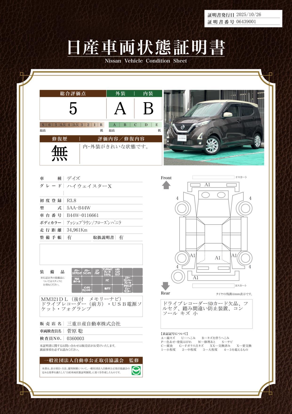 車両保証(デイズ ハイウェイスター X:三重日産自動車(株) 伊勢神久店)