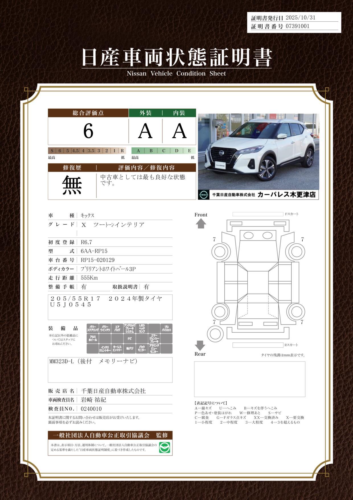 | 車両状態評価書 | ※クリックすると開きます![]() |
