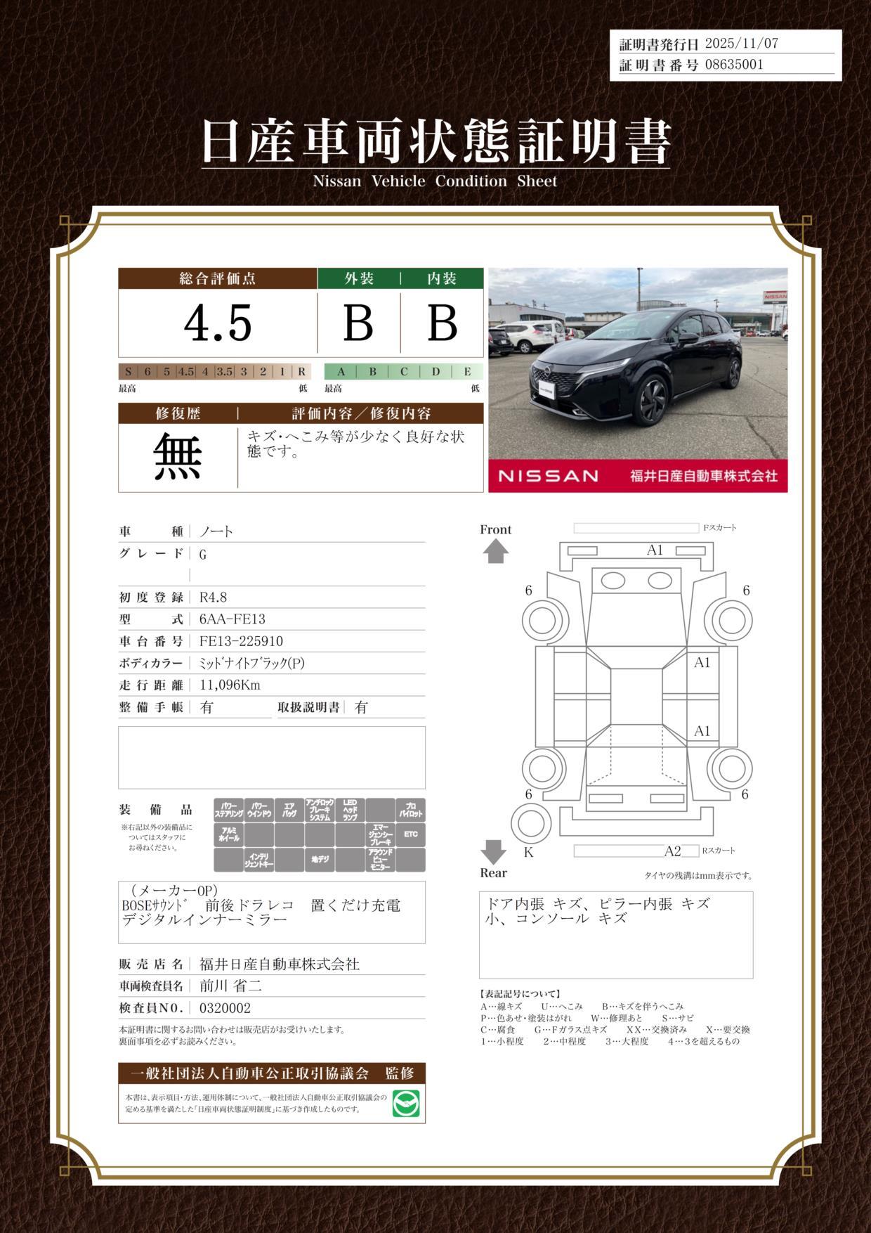 車両保証(オーラ G:福井日産自動車(株) くるまの広場)