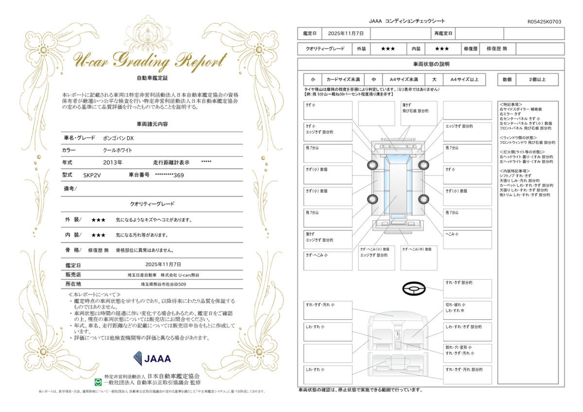 | 車両状態評価書 | ※クリックすると開きます![]() |