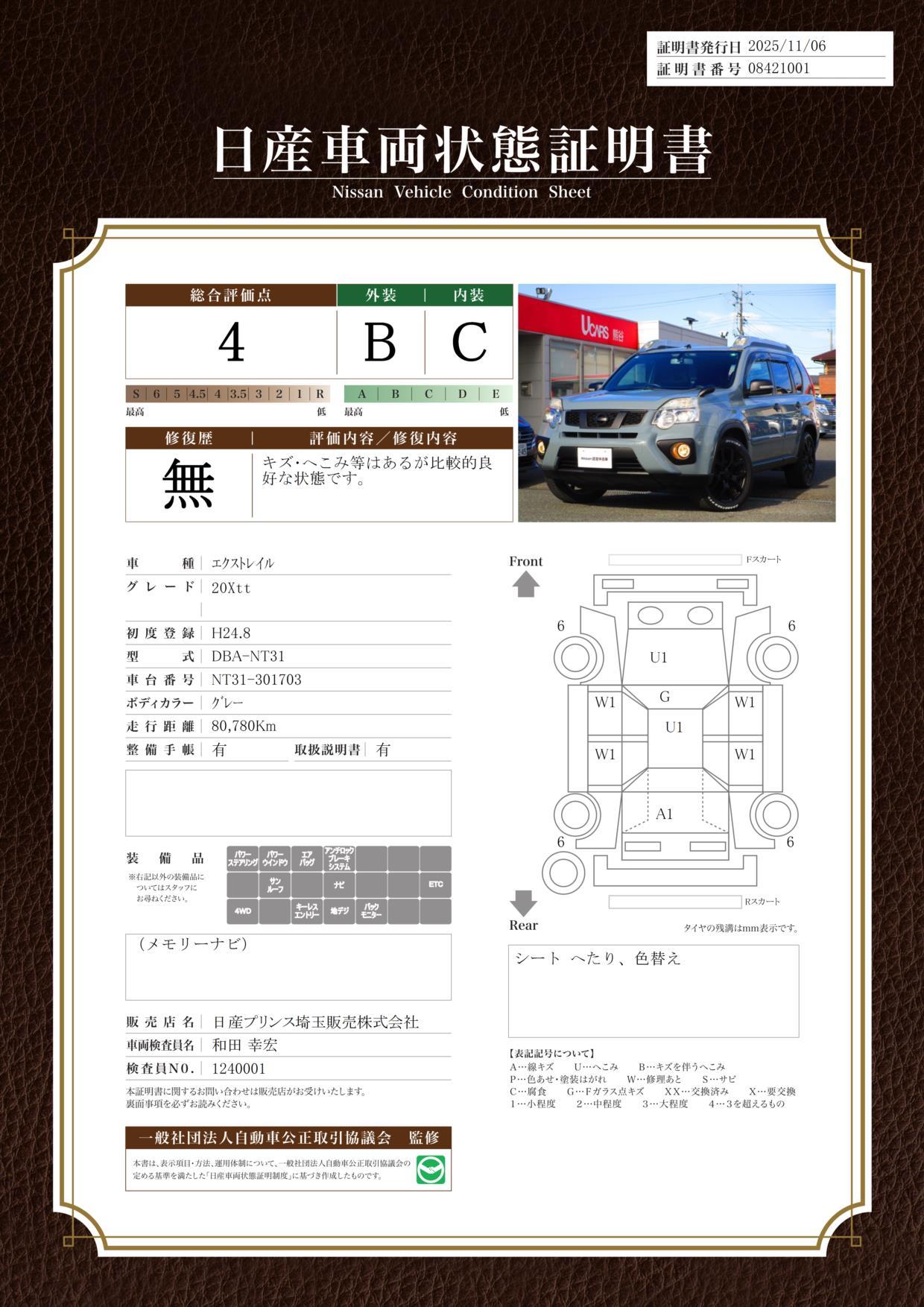 車両保証(エクストレイル 20Xtt:日産プリンス埼玉販売(株) ユーカーズ熊谷)