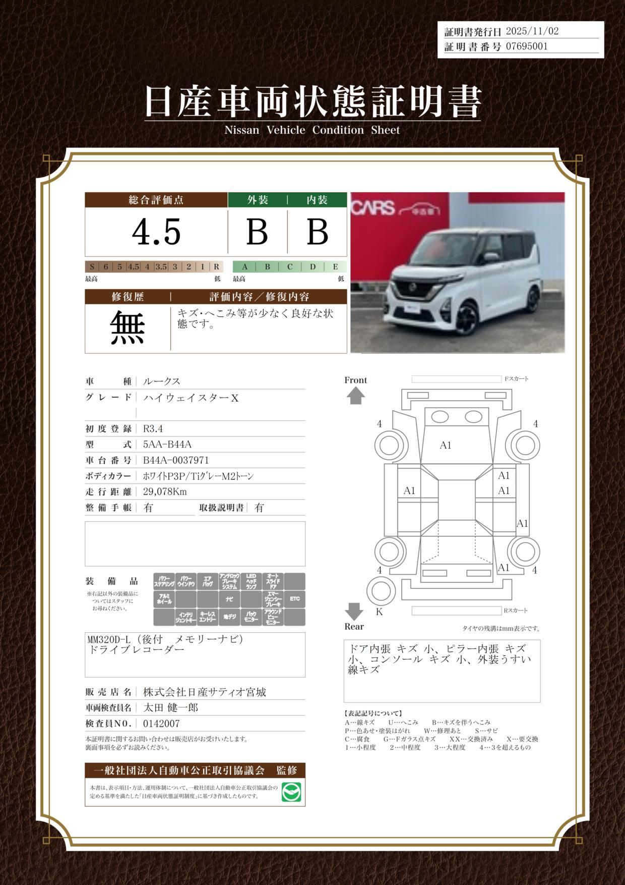 | 車両状態評価書 | ※クリックすると開きます![]() |