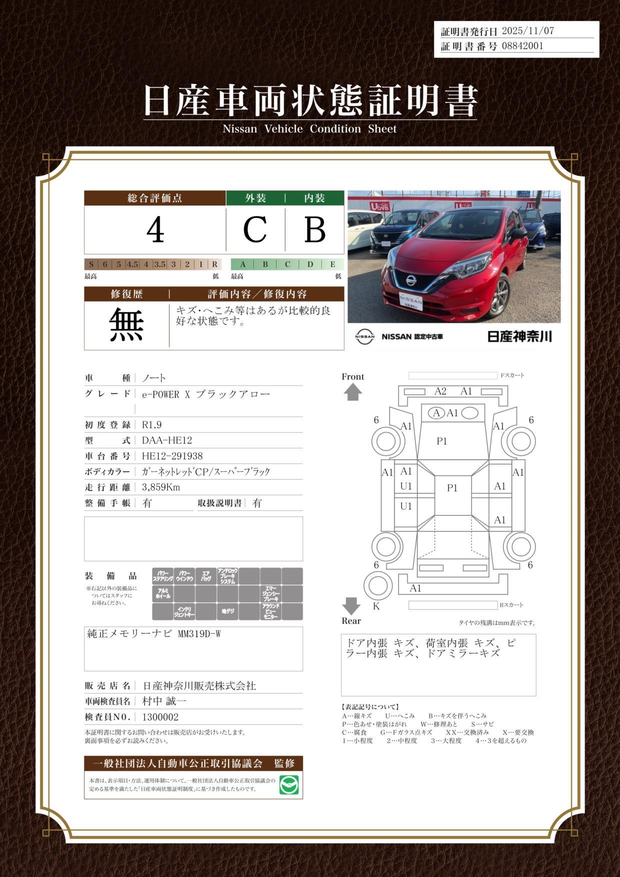 車両保証(ノート e-パワー X ブラックアロー:日産神奈川販売株式会社 Carスクエア秦野)