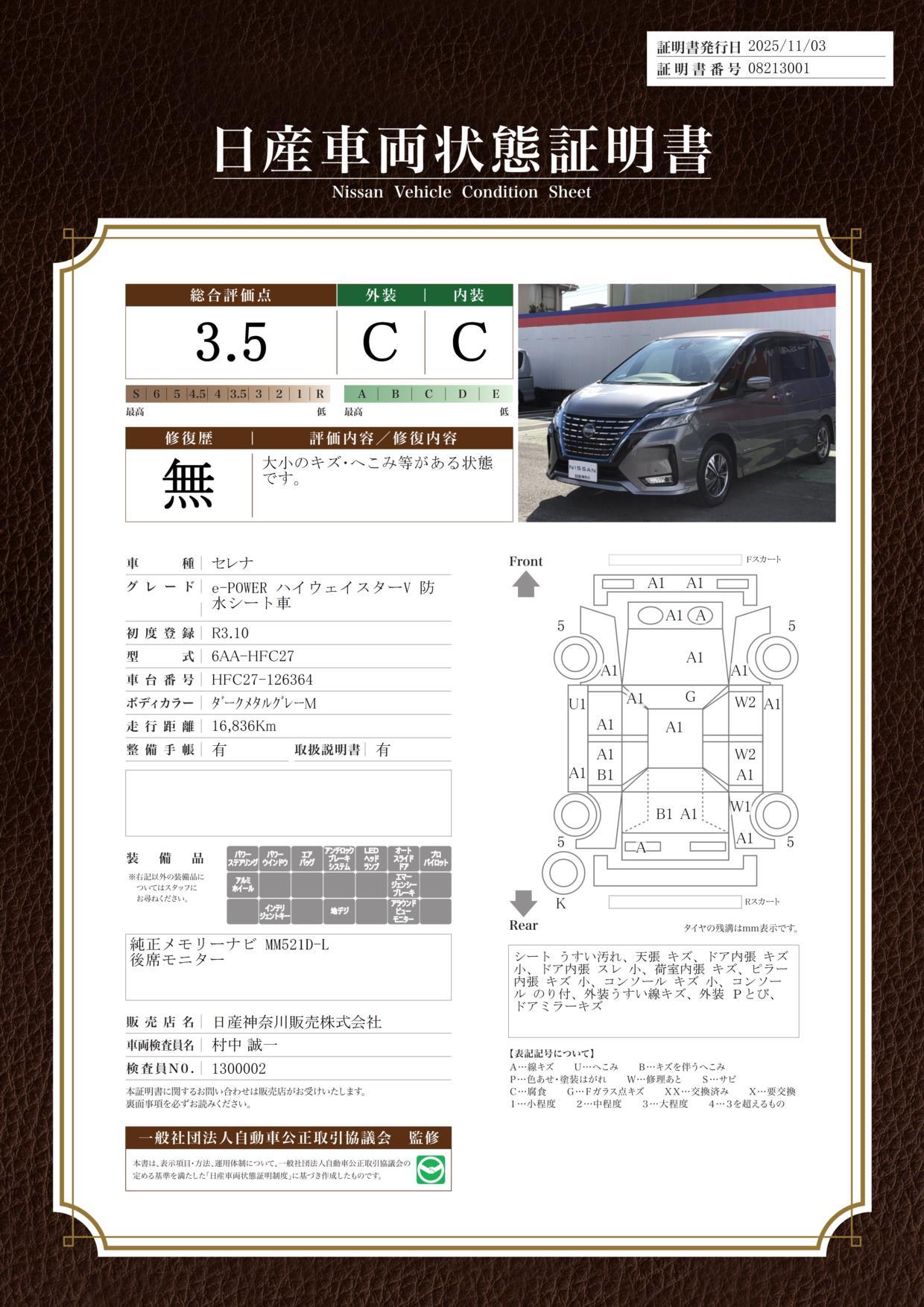 車両保証(セレナ e-パワー ハイウェイスターV:日産神奈川販売株式会社 Carスクエア相模原)