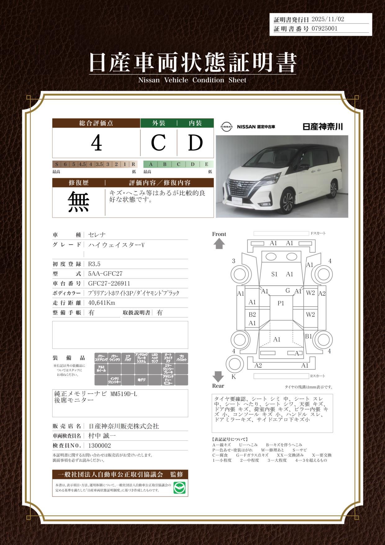 車両保証(セレナ ハイウェイスターV:日産神奈川販売株式会社 Carスクエア東名横浜)