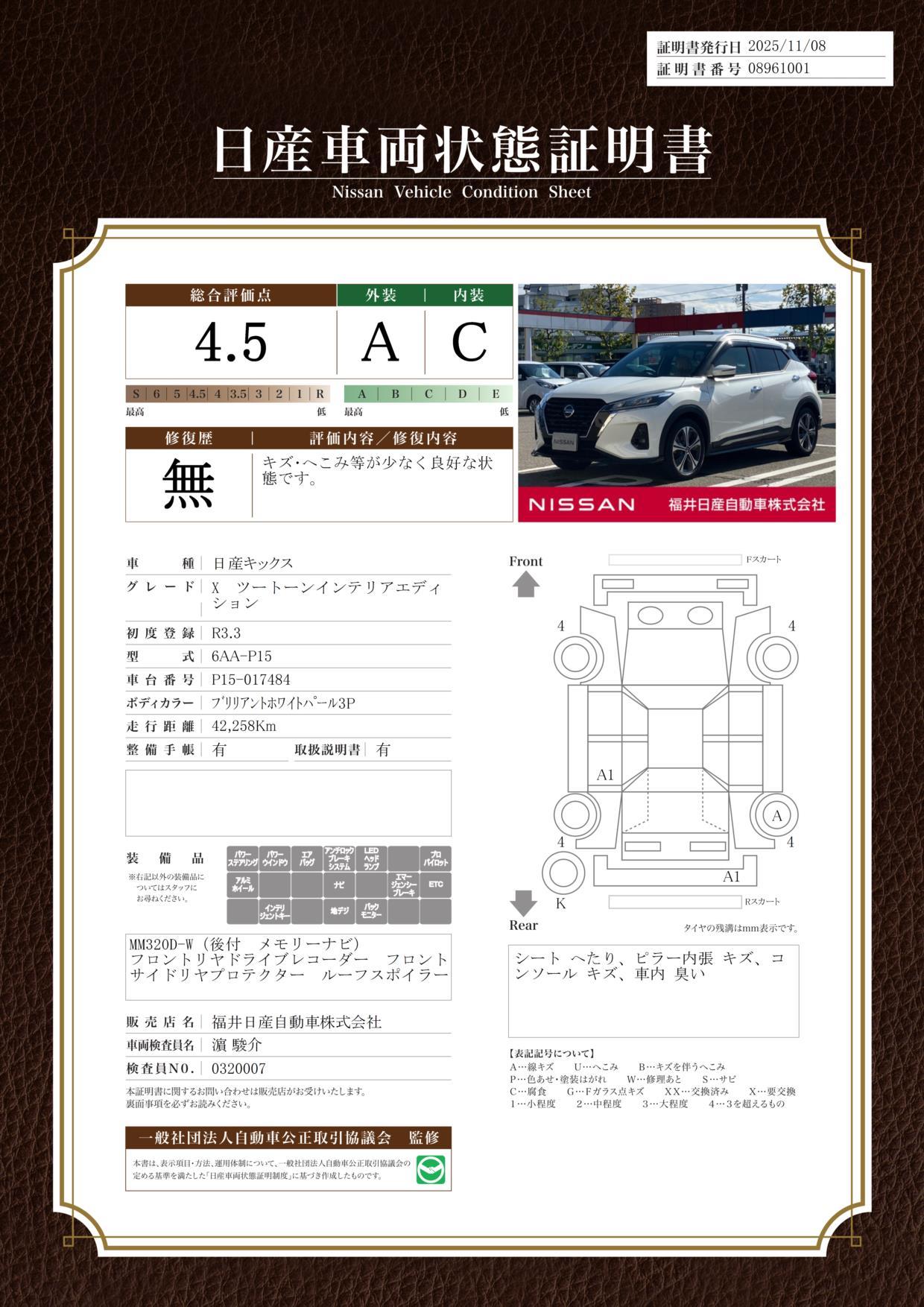 | 車両状態評価書 | ※クリックすると開きます![]() |