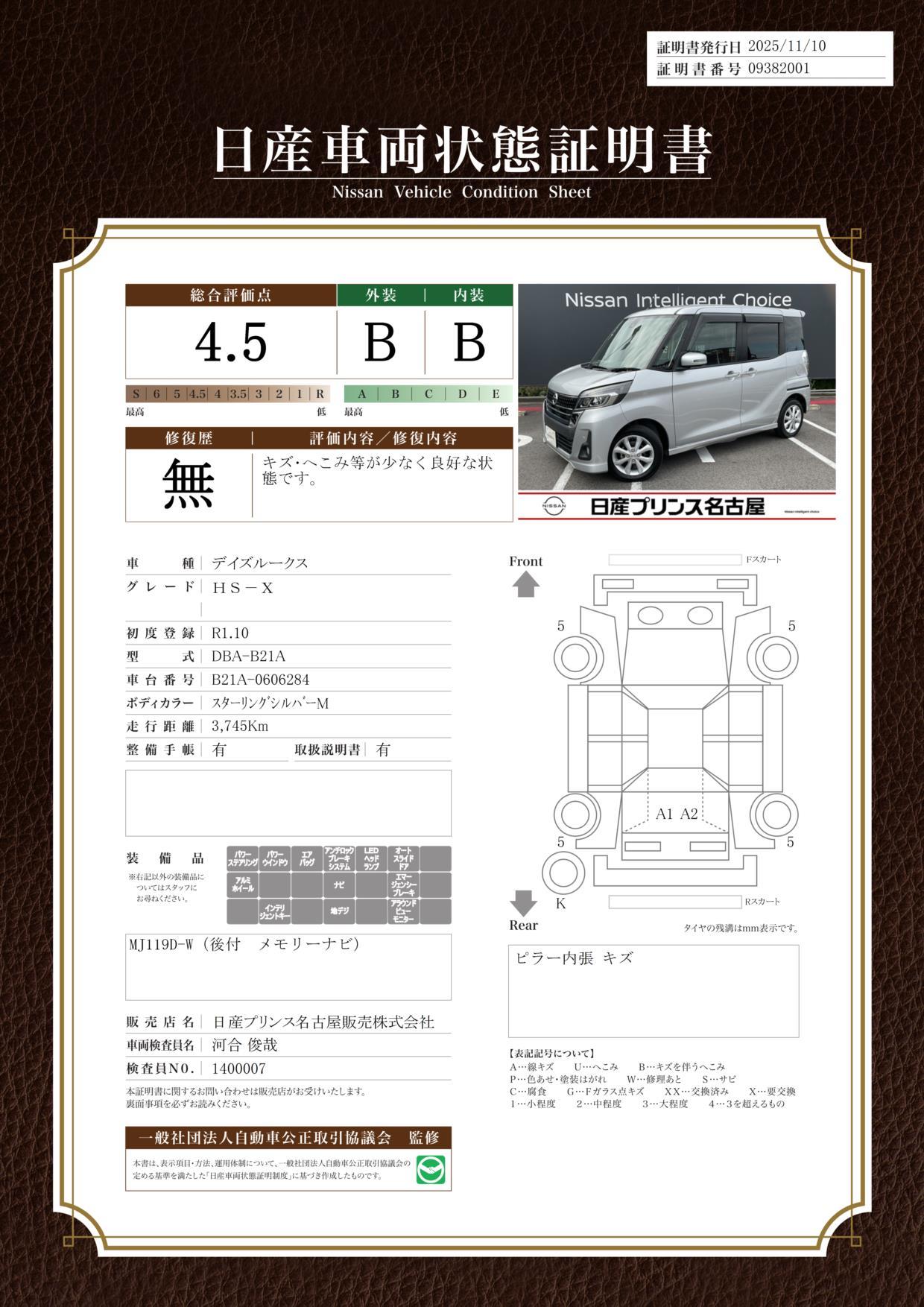 車両保証(デイズルークス ハイウェイスター X:日産プリンス名古屋販売(株) カートピア長久手)