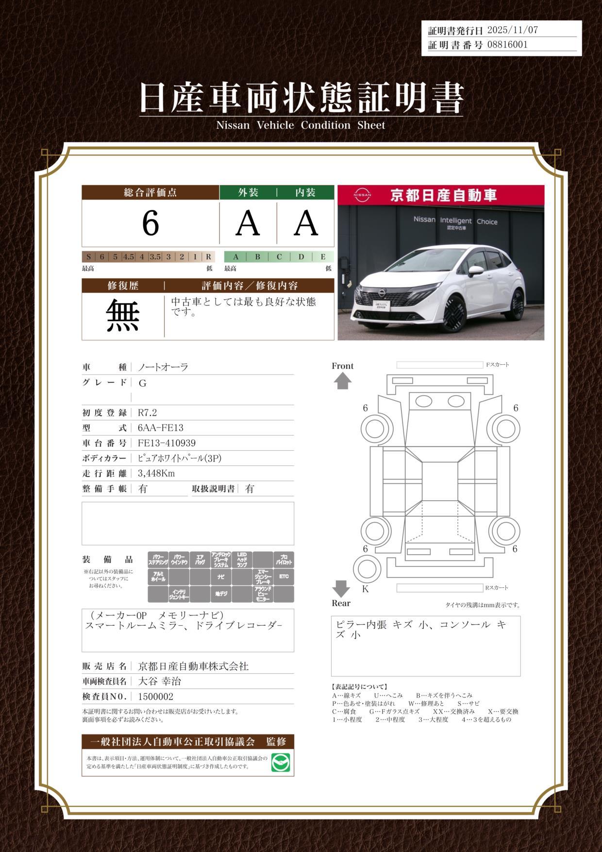 車両保証(オーラ G:京都日産自動車(株)カーメッセ久御山U-Cars)