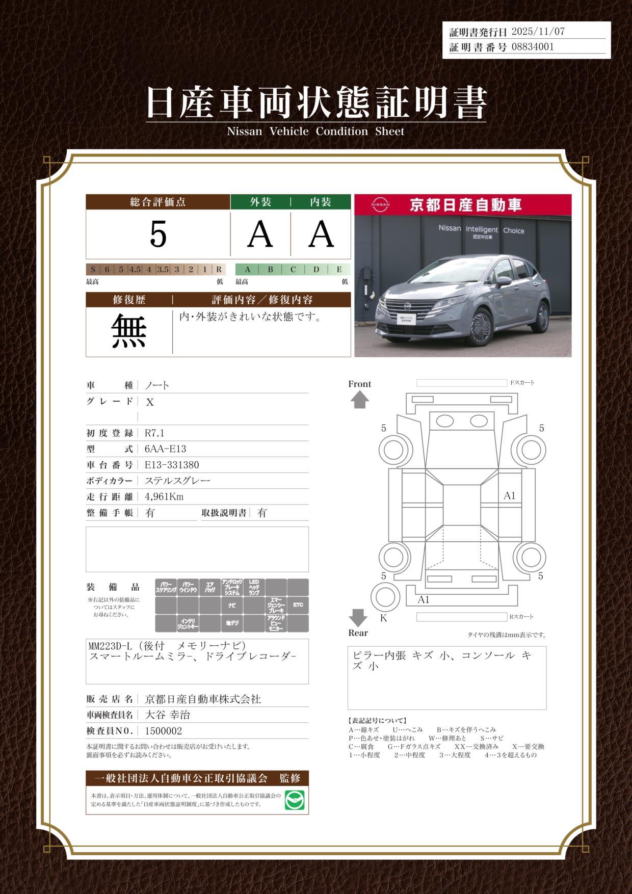 車両保証(ノート X:京都日産自動車(株)カーメッセ久御山U-Cars)