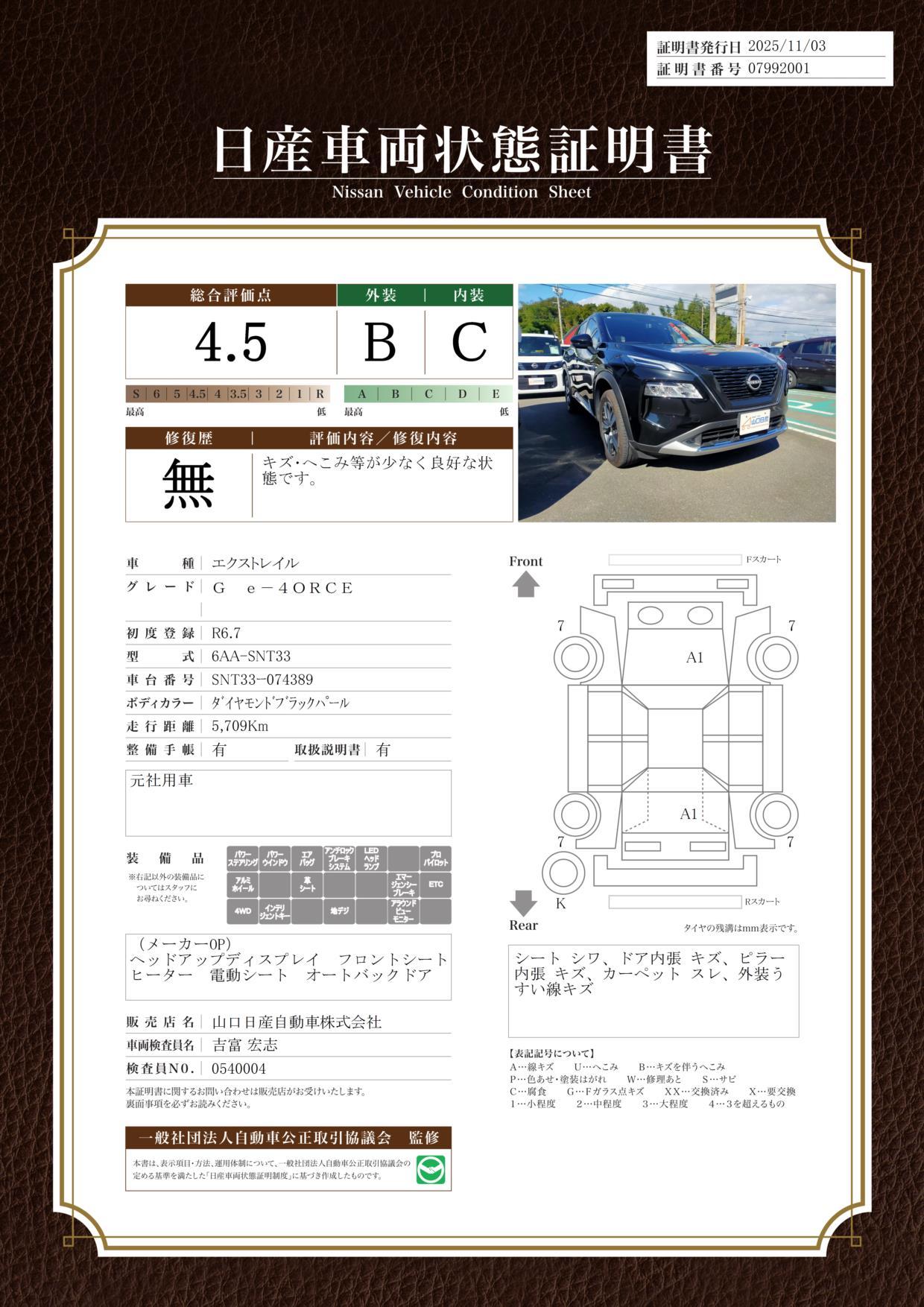 車両保証(エクストレイル G e-4ORCE:山口日産自動車(株)ステージ23宇部店)
