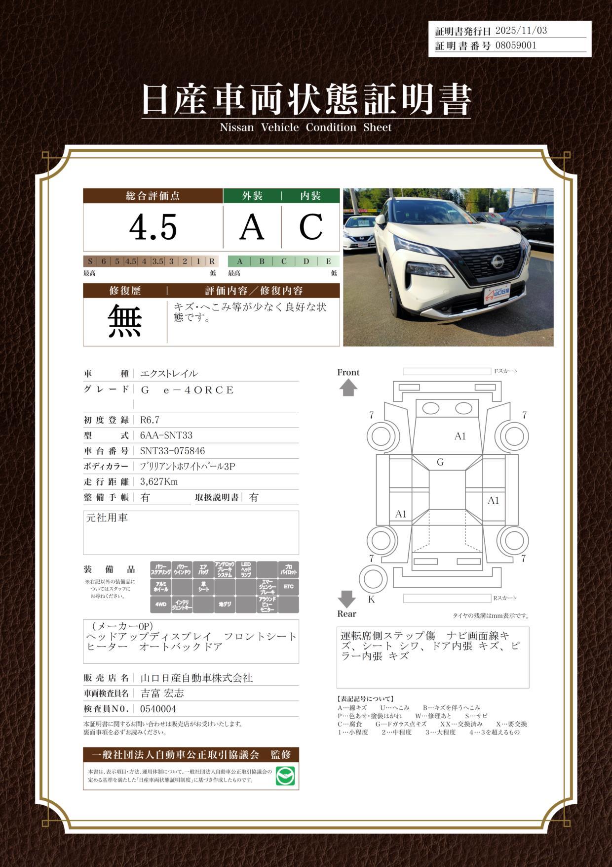 車両保証(エクストレイル G e-4ORCE:山口日産自動車(株)ステージ23宇部店)