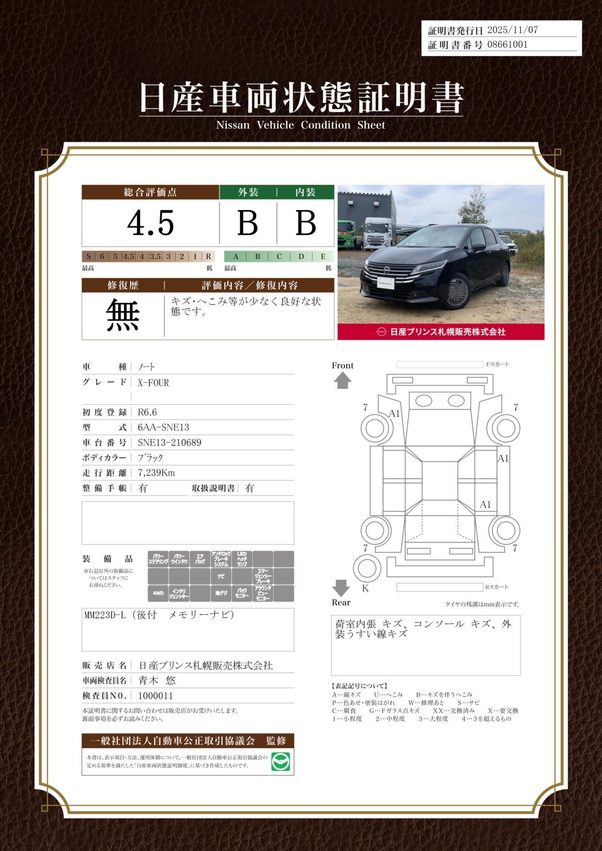 | 車両状態評価書 | ※クリックすると開きます![]() |