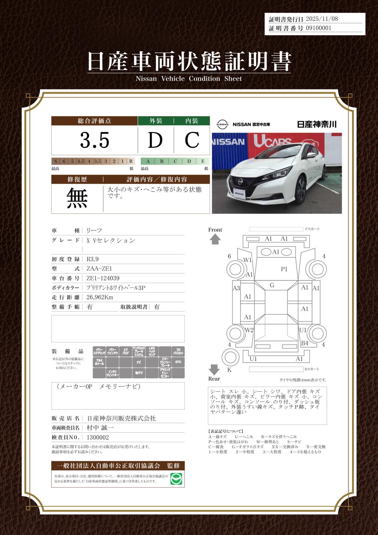 車両保証(リーフ X Vセレクション:日産神奈川販売株式会社 Carスクエア横須賀)