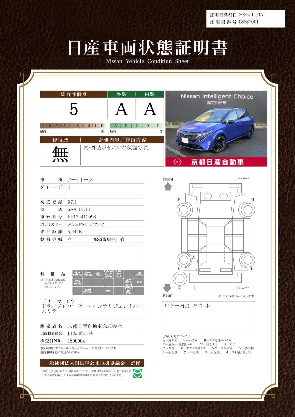 車両保証(オーラ G:京都日産自動車(株)U・タウン福知山)