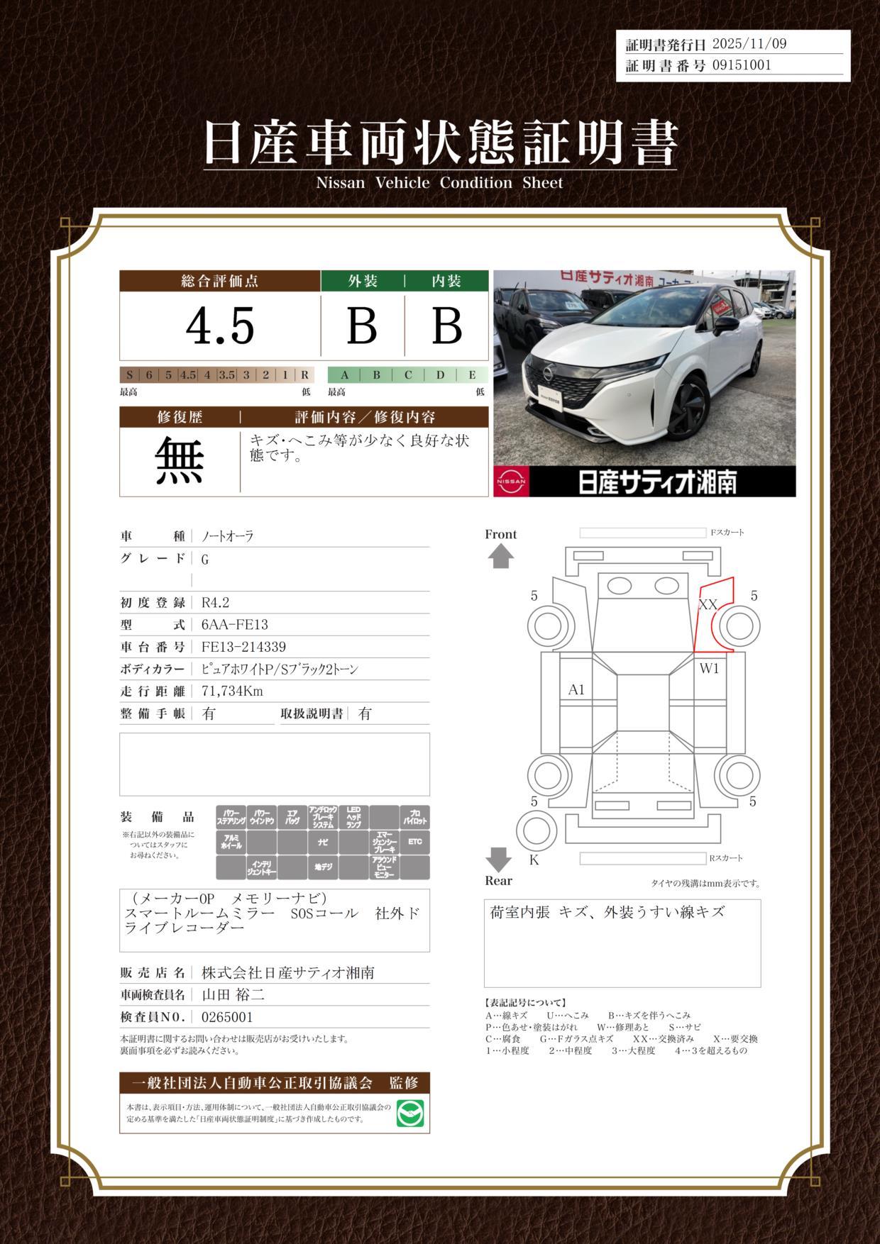 車両保証(オーラ G:(株)日産サティオ湘南 ユーカーマーケット小田原)