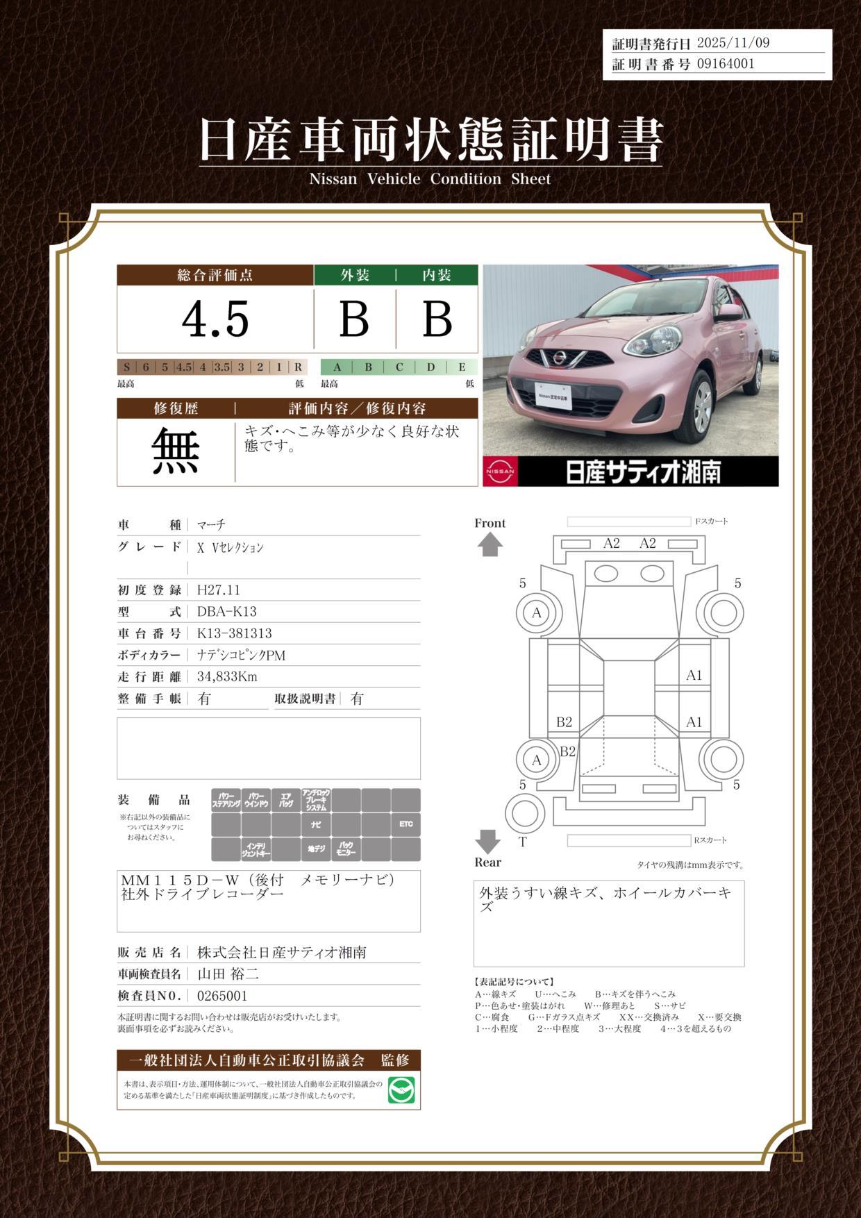 | 車両状態評価書 | ※クリックすると開きます![]() |