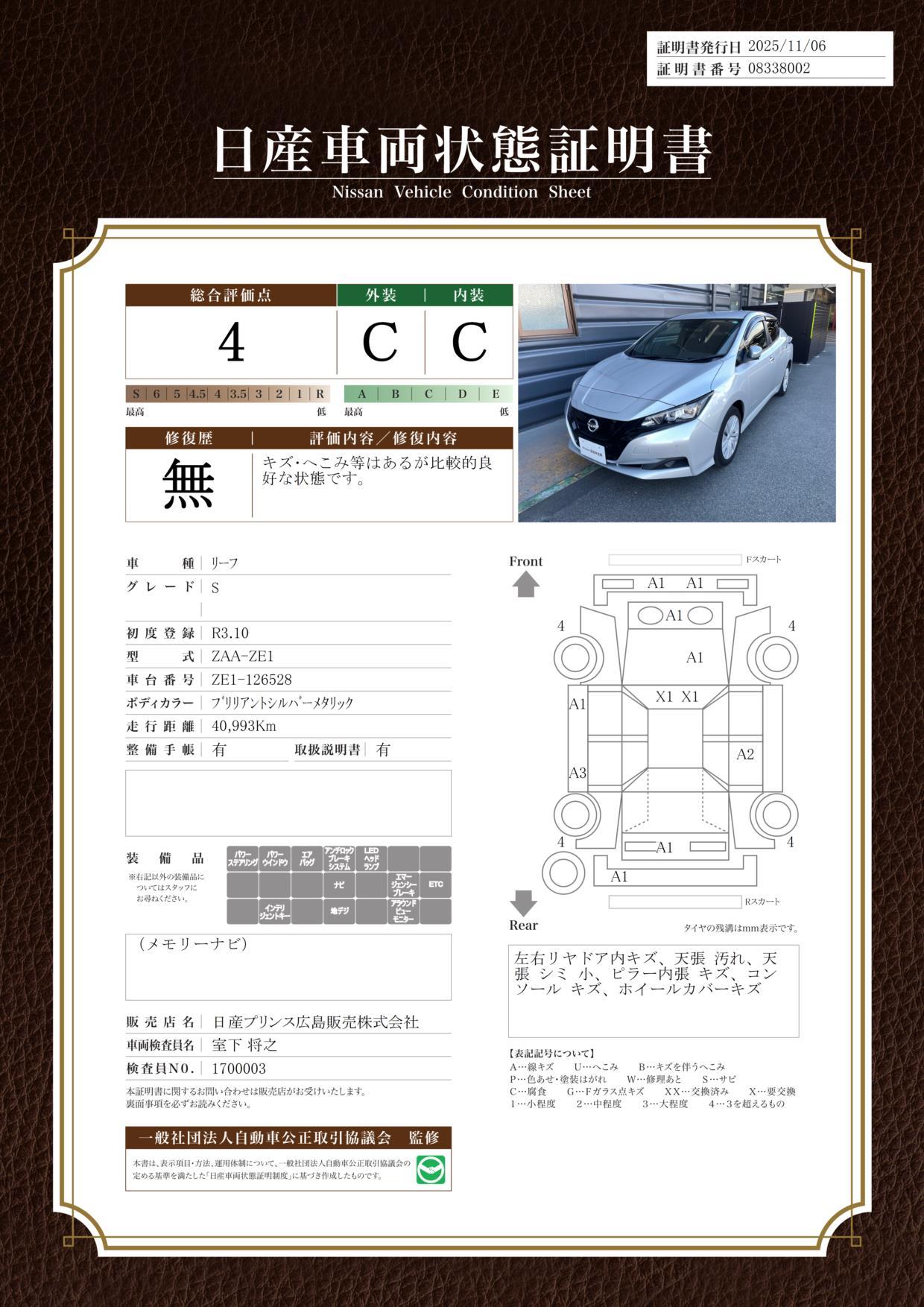 | 車両状態評価書 | ※クリックすると開きます![]() |