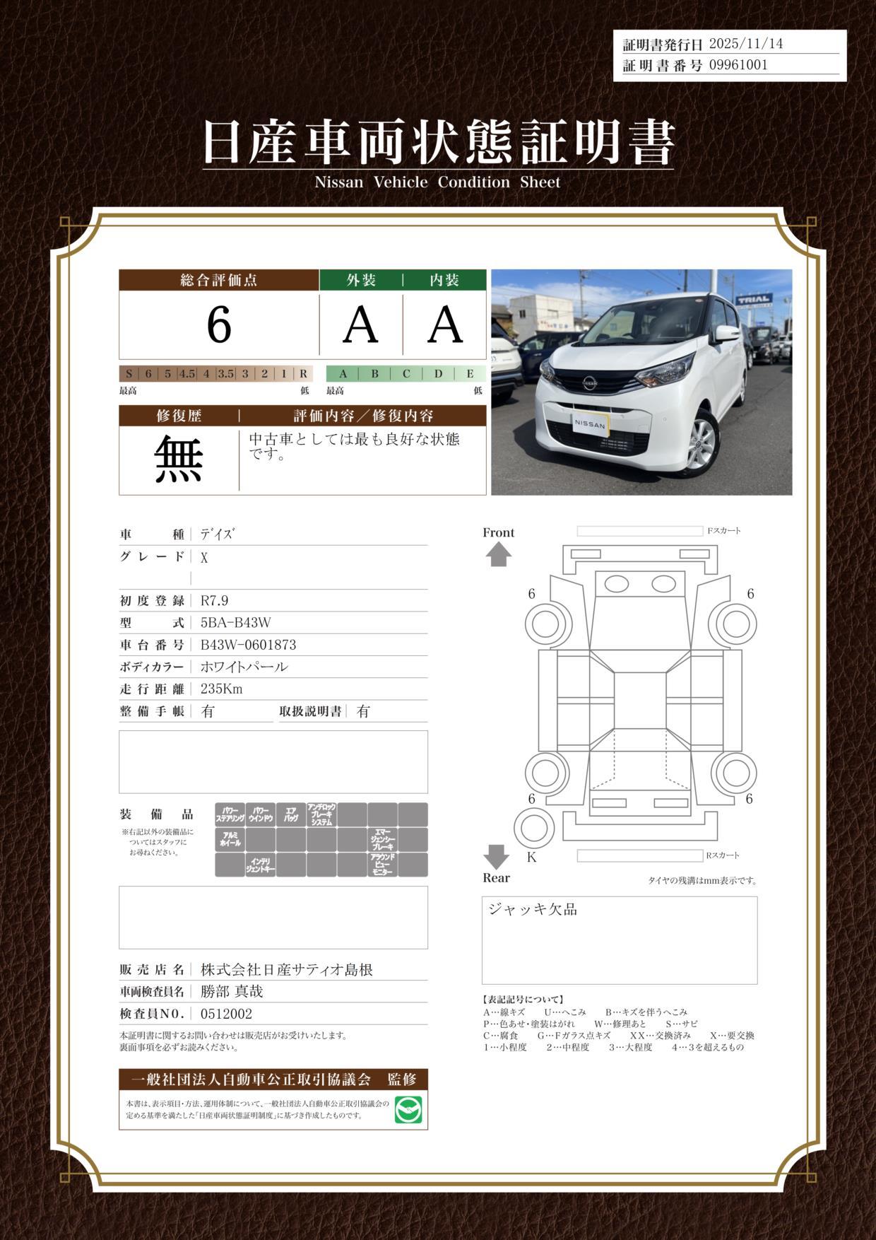 車両保証(デイズ X:(株)日産サティオ島根 日産U-CAR出雲)