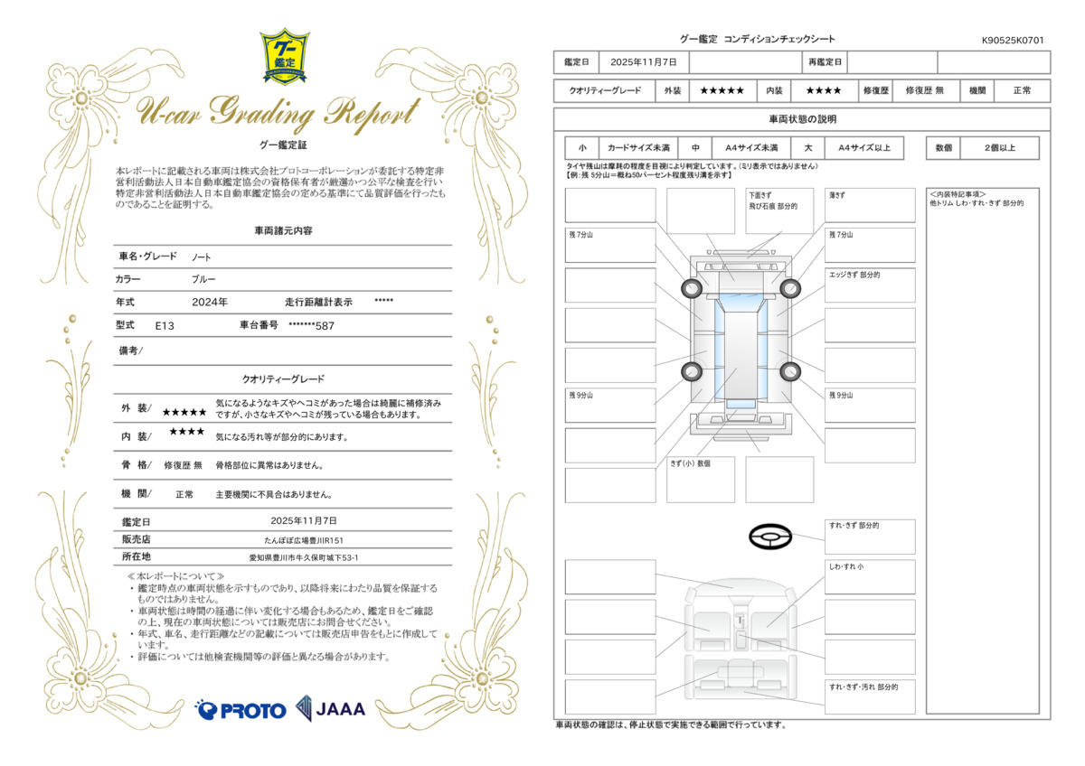 車両保証(ノート オーテック:東愛知日産自動車(株) たんぽぽ広場 豊川)