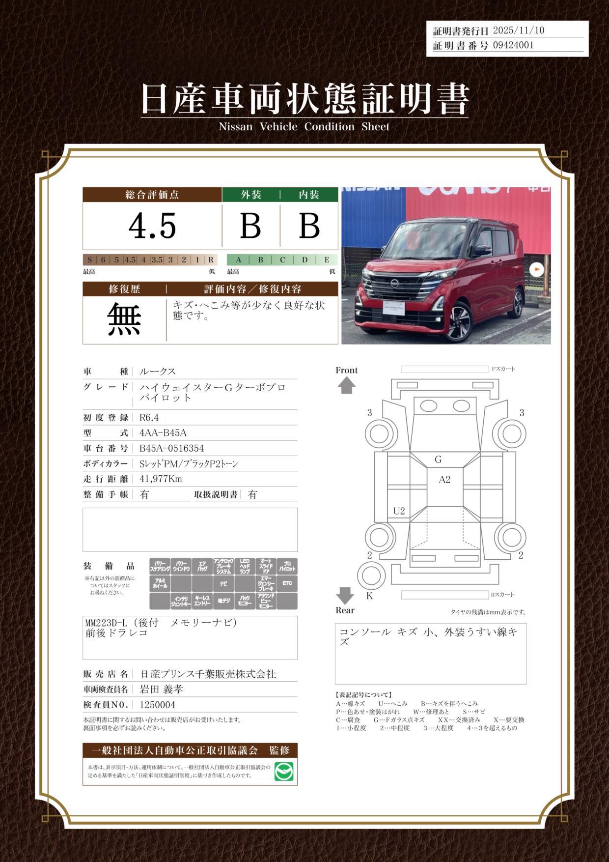 車両保証(ルークス ハイウェイスター Gターボプロパイロットエディション:日産プリンス千葉販売株式会社 ユースクエア成田)