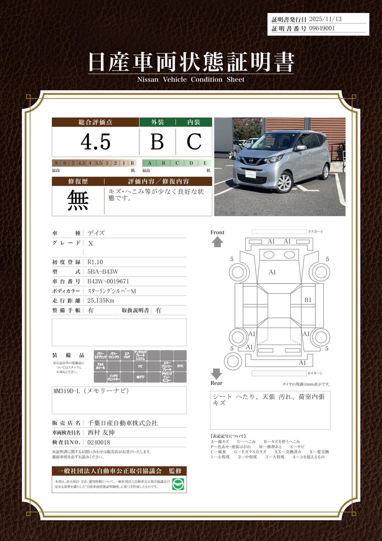 車両保証(デイズ X:千葉日産自動車株式会社 日産カーパレス柏)