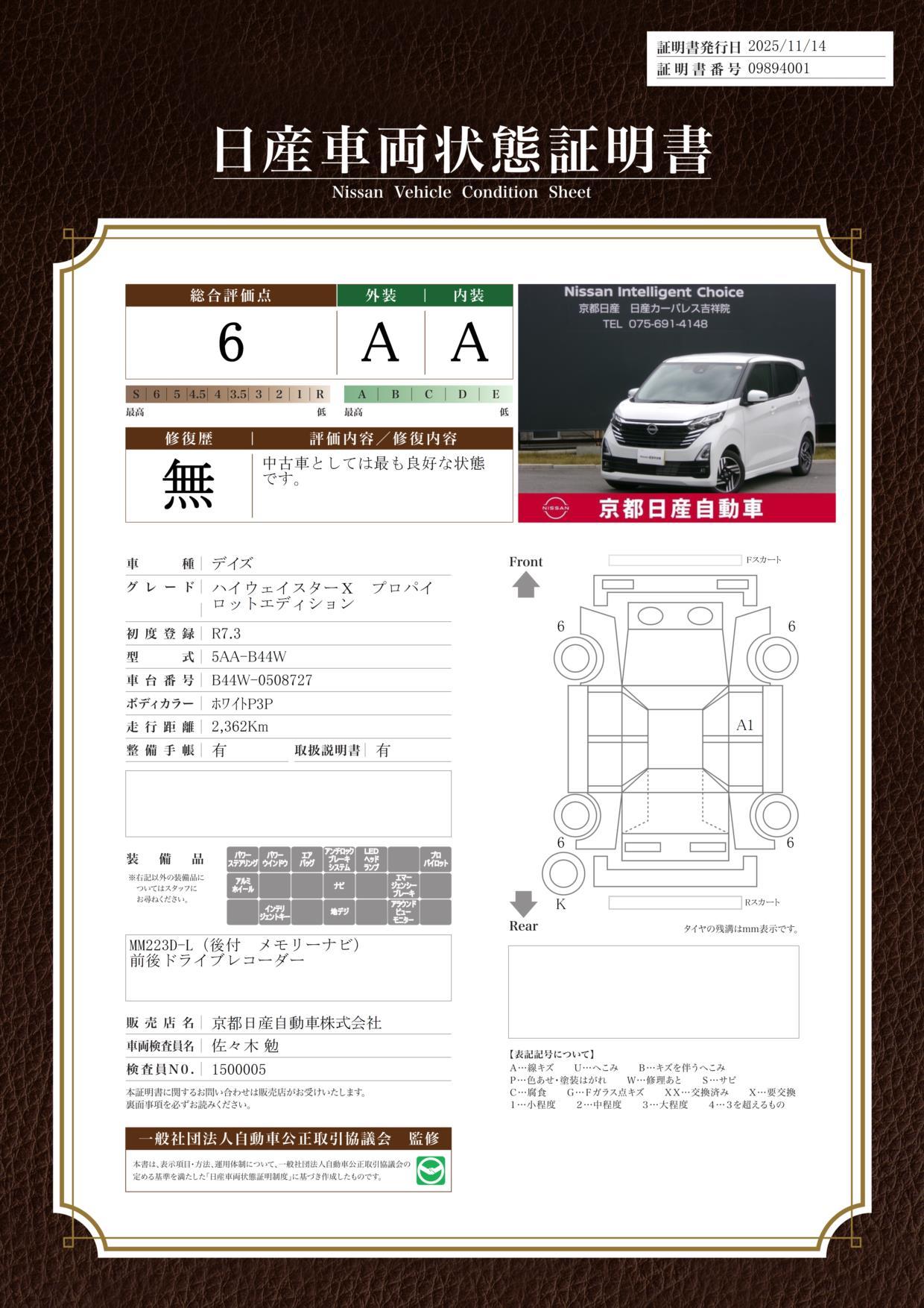 車両保証(デイズ ハイウェイスター X プロパイロットエディション:京都日産自動車(株)日産カーパレス吉祥院)