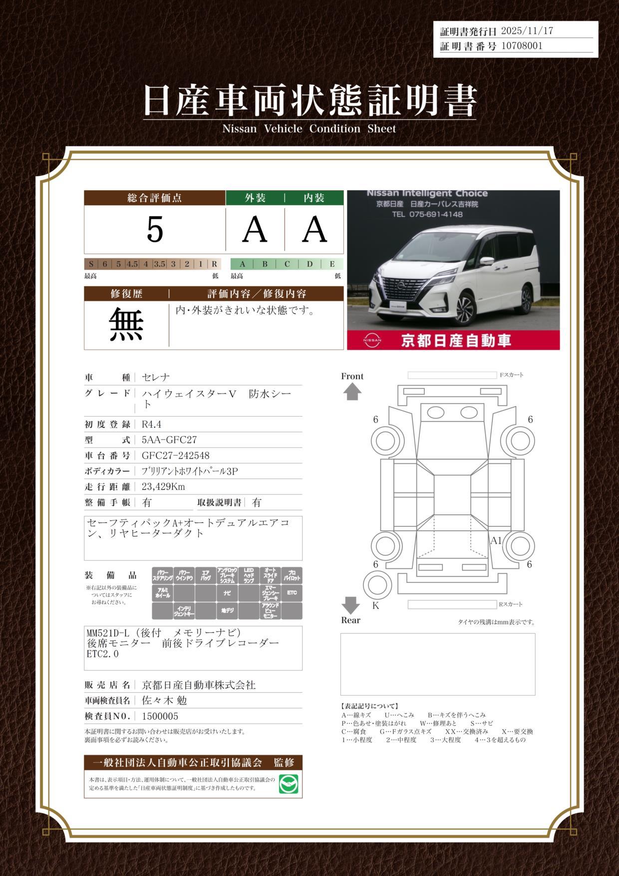 車両保証(セレナ ハイウェイスターV:京都日産自動車(株)日産カーパレス吉祥院)