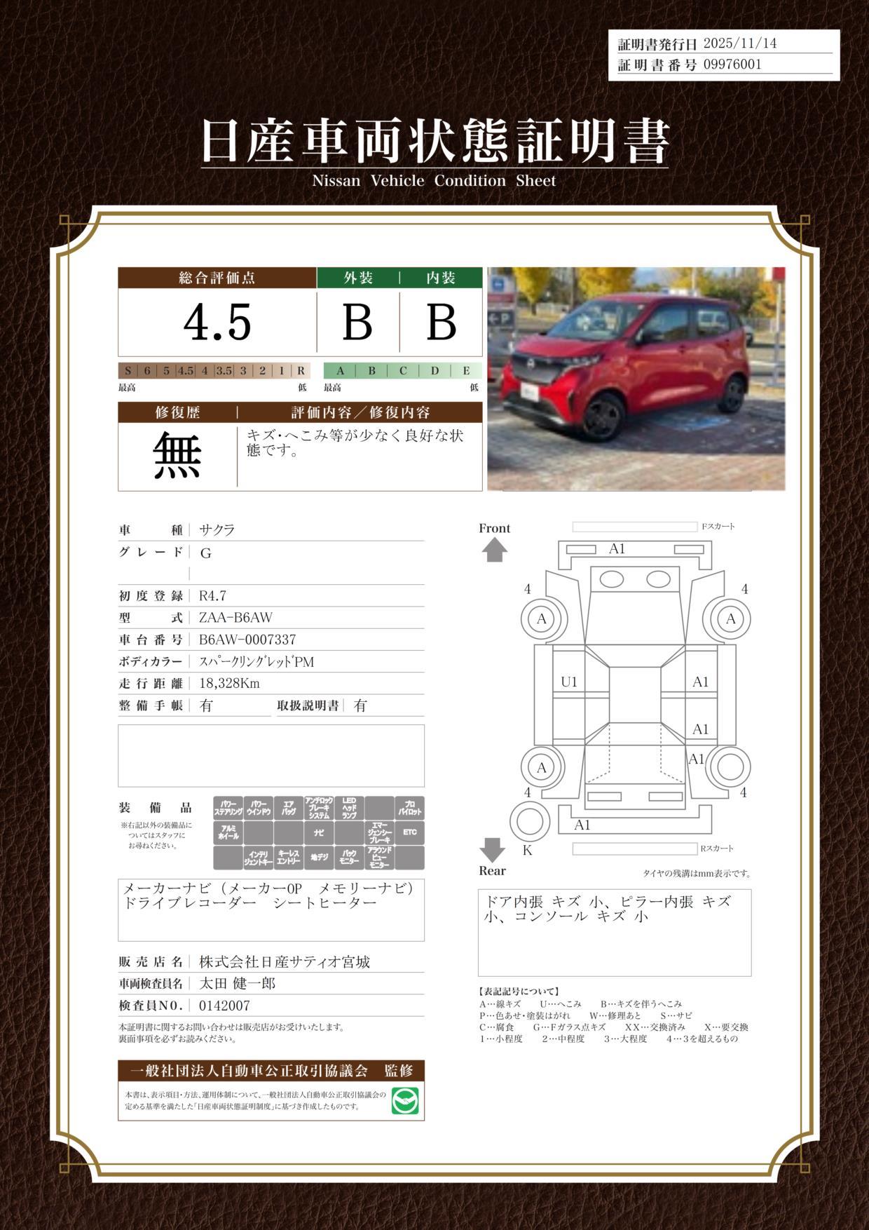車両保証(サクラ G:(株)日産サティオ宮城 Uカー加茂店)