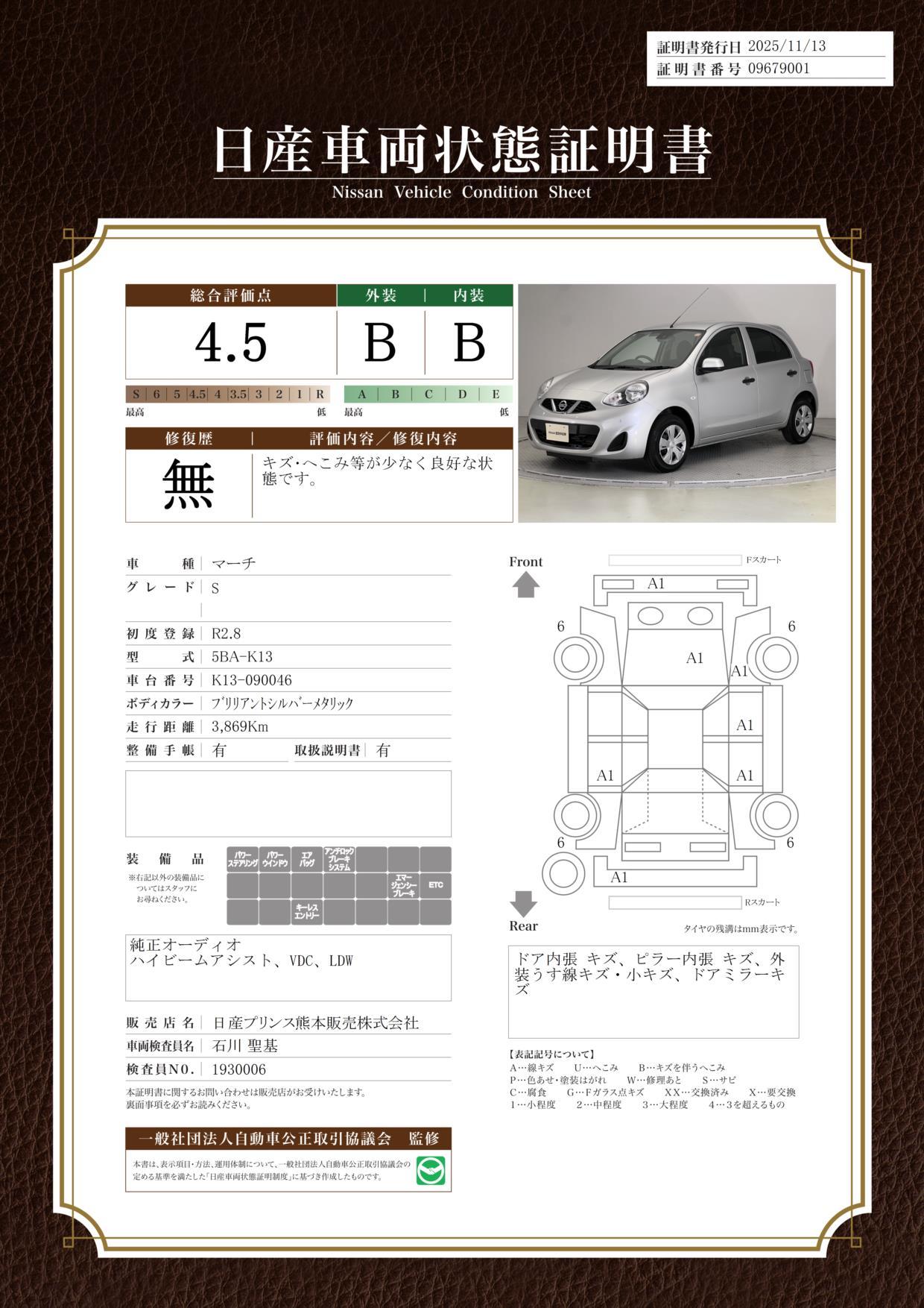 車両保証(マーチ S:日産プリンス熊本販売(株) カーランド新南部店)