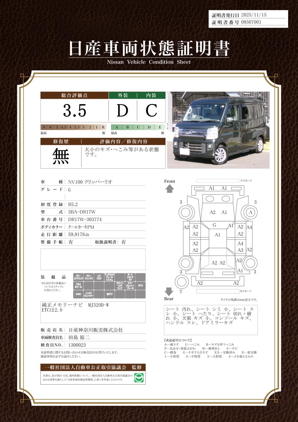 車両保証(NV100クリッパーリオ G:日産神奈川販売株式会社 Carスクエア戸塚踊場)