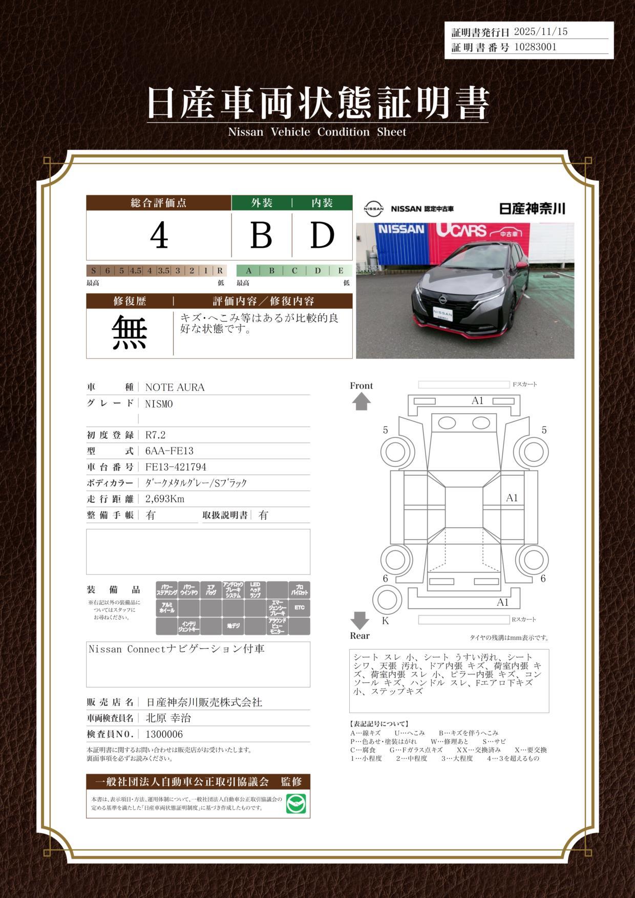 車両保証(オーラ ニスモ:日産神奈川販売株式会社 Carスクエア横須賀)