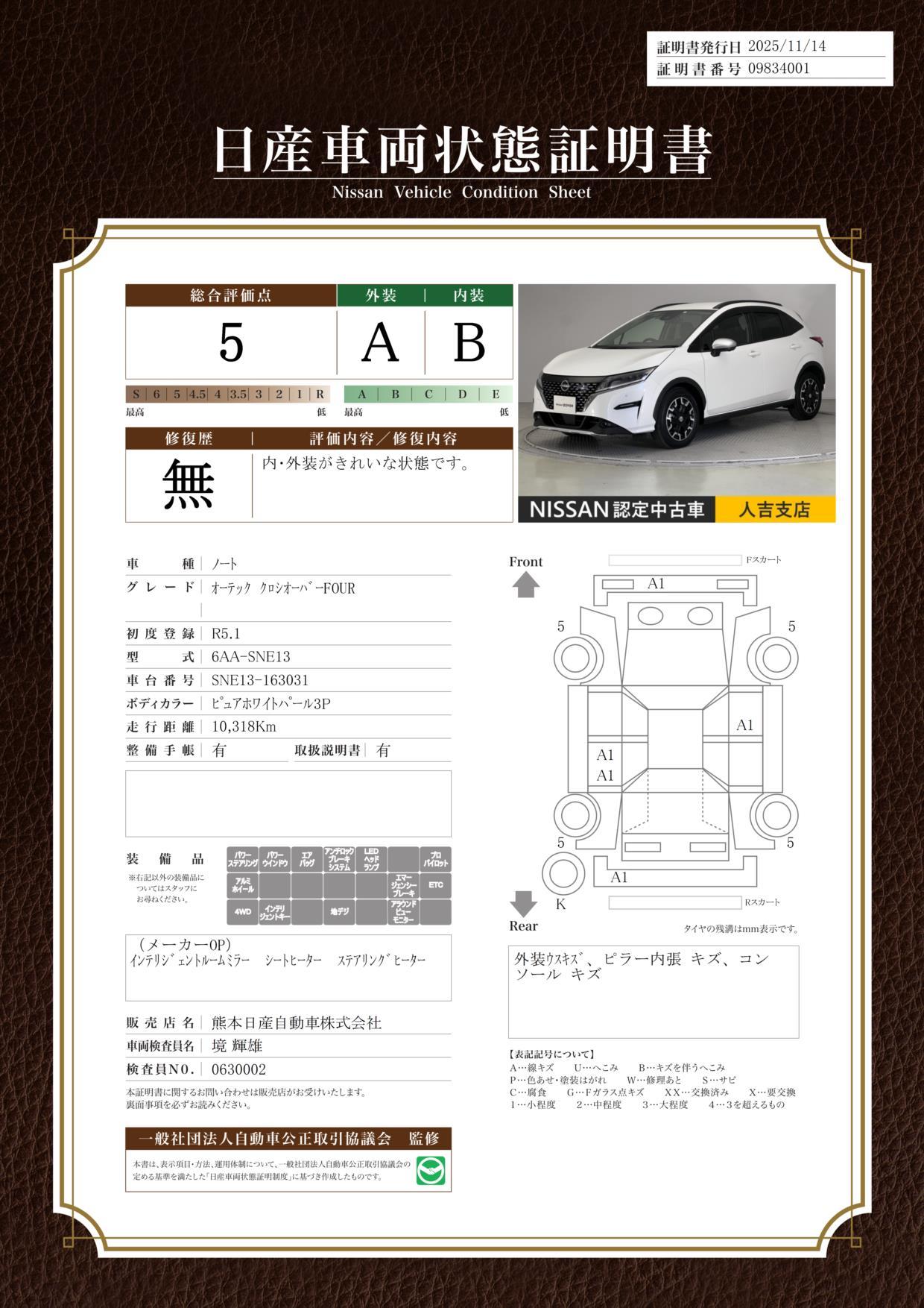 車両保証(ノート オーテック クロスオーバー FOUR:熊本日産自動車株式会社 人吉支店)