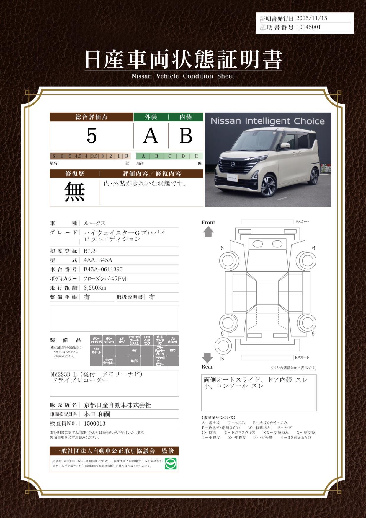 車両保証(ルークス ハイウェイスター Gターボプロパイロットエディション:京都日産自動車(株)日産カーパレス伏見)